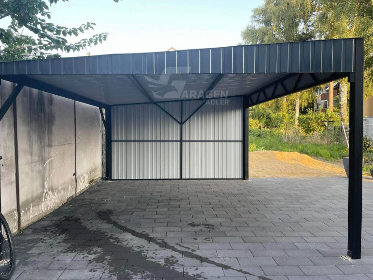 • Wir verwenden solide Verstärkungen der Konstruktion aus Winkeln, Trägern und geschlossenen Profilen Verstärkung des Daches durch einen Stahlrahmen+ Dachkonstruktion aus robusten, geschlossenen, feuerverzinkten ProfilenWir fertigen jede garage nach ihren wünschen. Bitte Kontaktieren sie uns, wenn sie irgendwelche fragen haben.