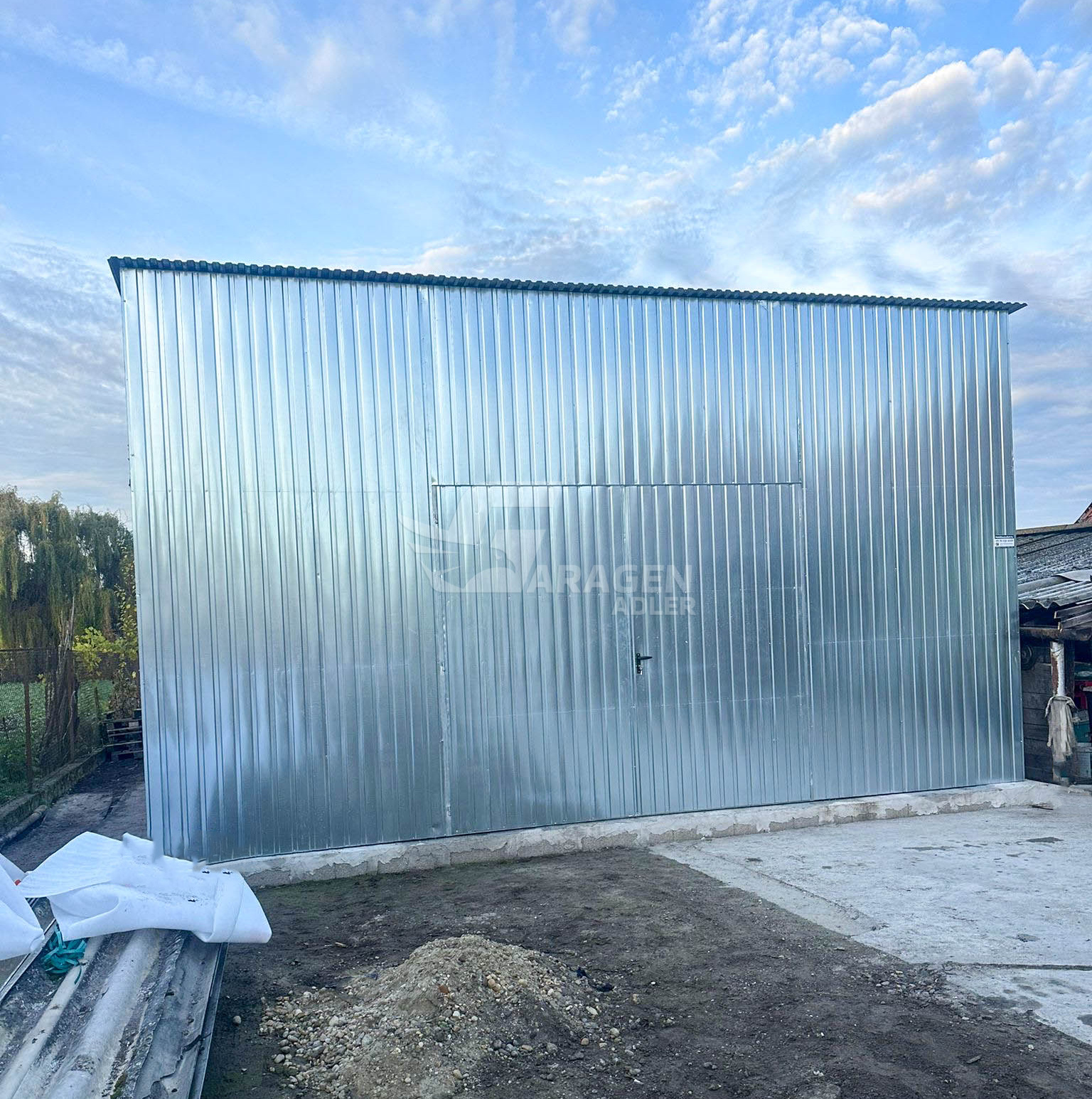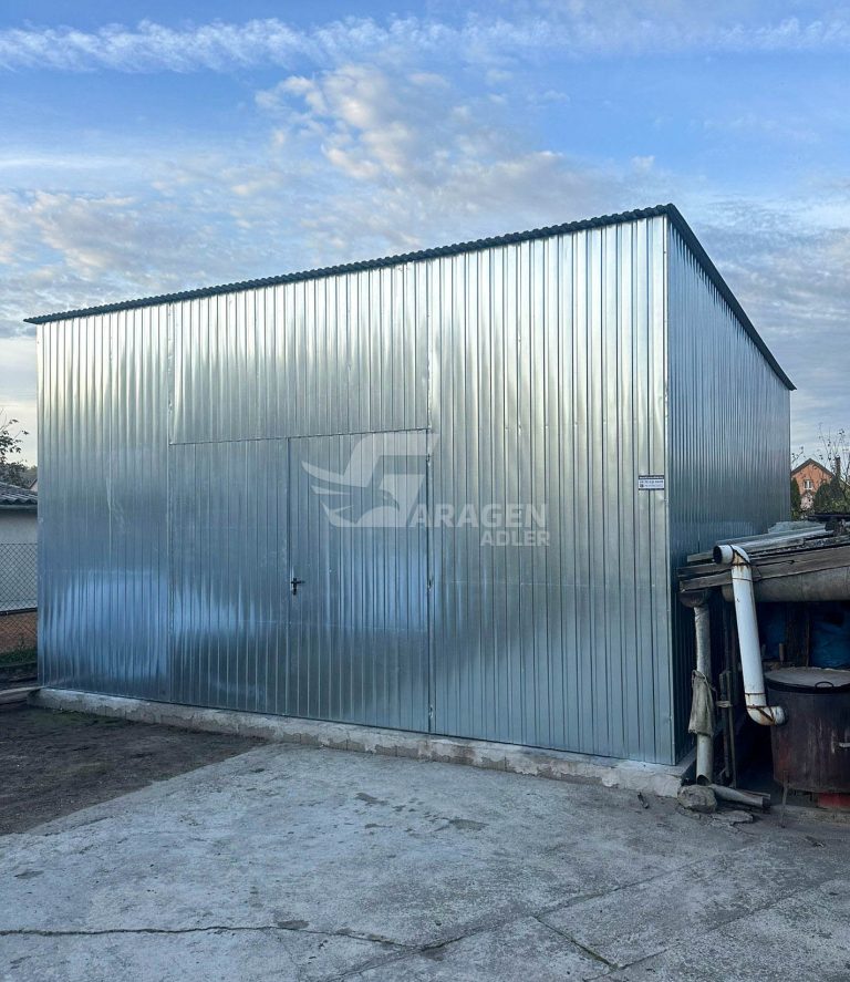 Blechgarage – Blechhalle – 7x8m – Zweiflügeliges Tor – Verzinkt – Flachdach ID766