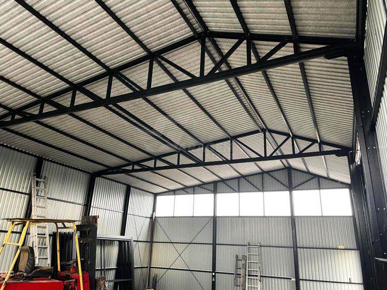 Dachkonstruktion aus robusten, geschlossenen, feuerverzinkten Profilen