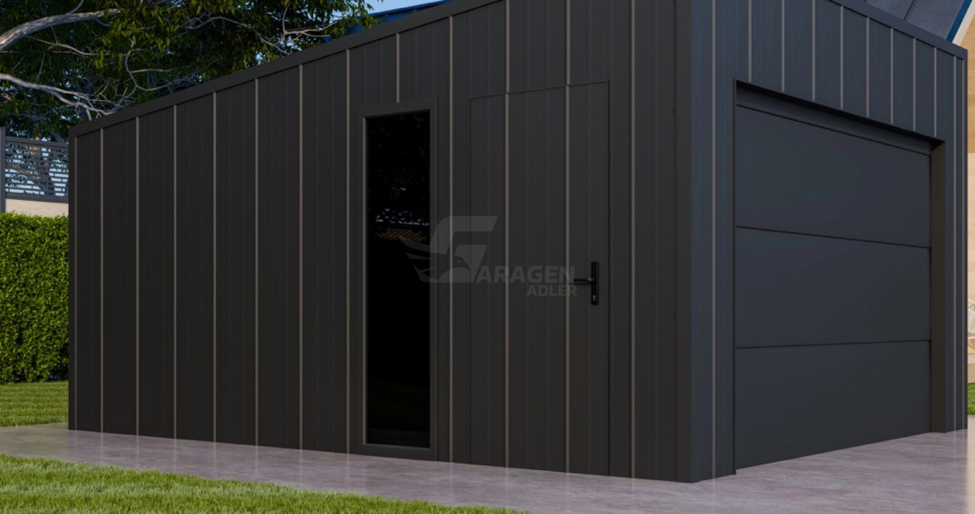 Dachkonstruktion aus robusten, geschlossenen, feuerverzinkten ProfilenWir fertigen jede garage nach ihren wünschen. Bitte Kontaktieren sie uns, wenn sie irgendwelche fragen haben.