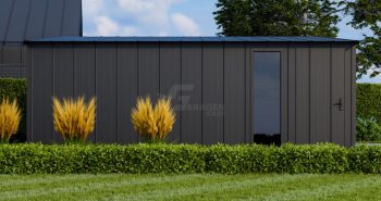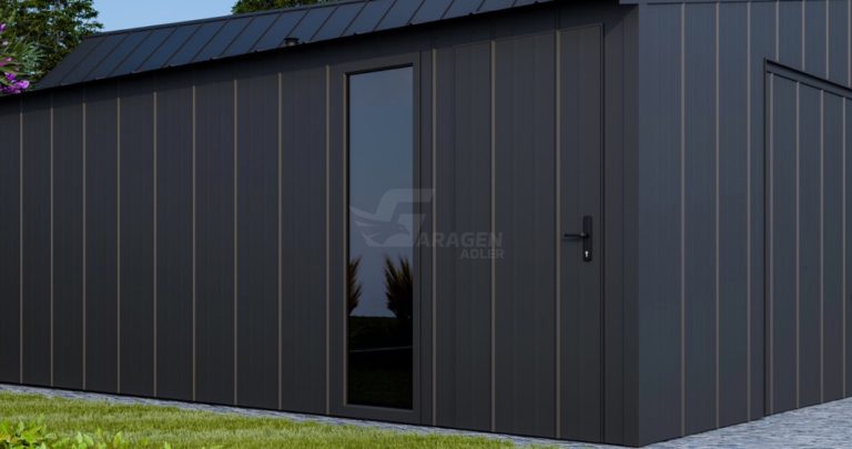 - Wände mit Stehfalzblech-Verkleidung, kolor: antracyt mat 7016