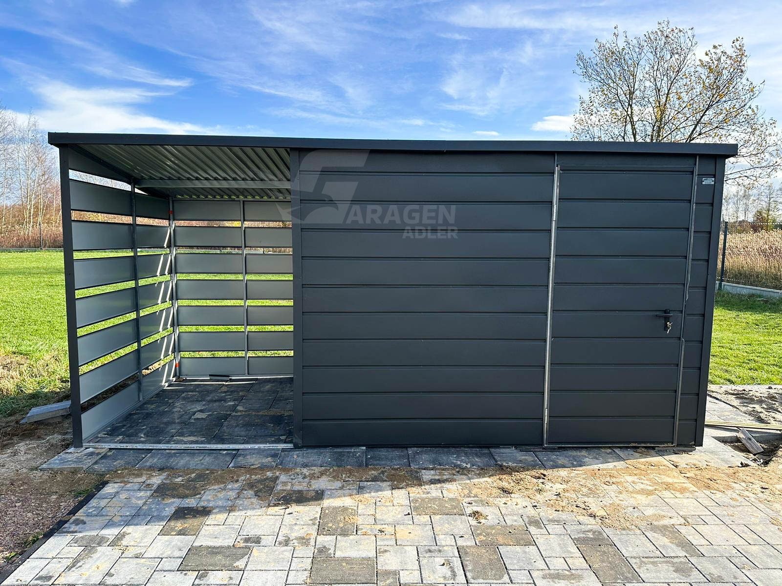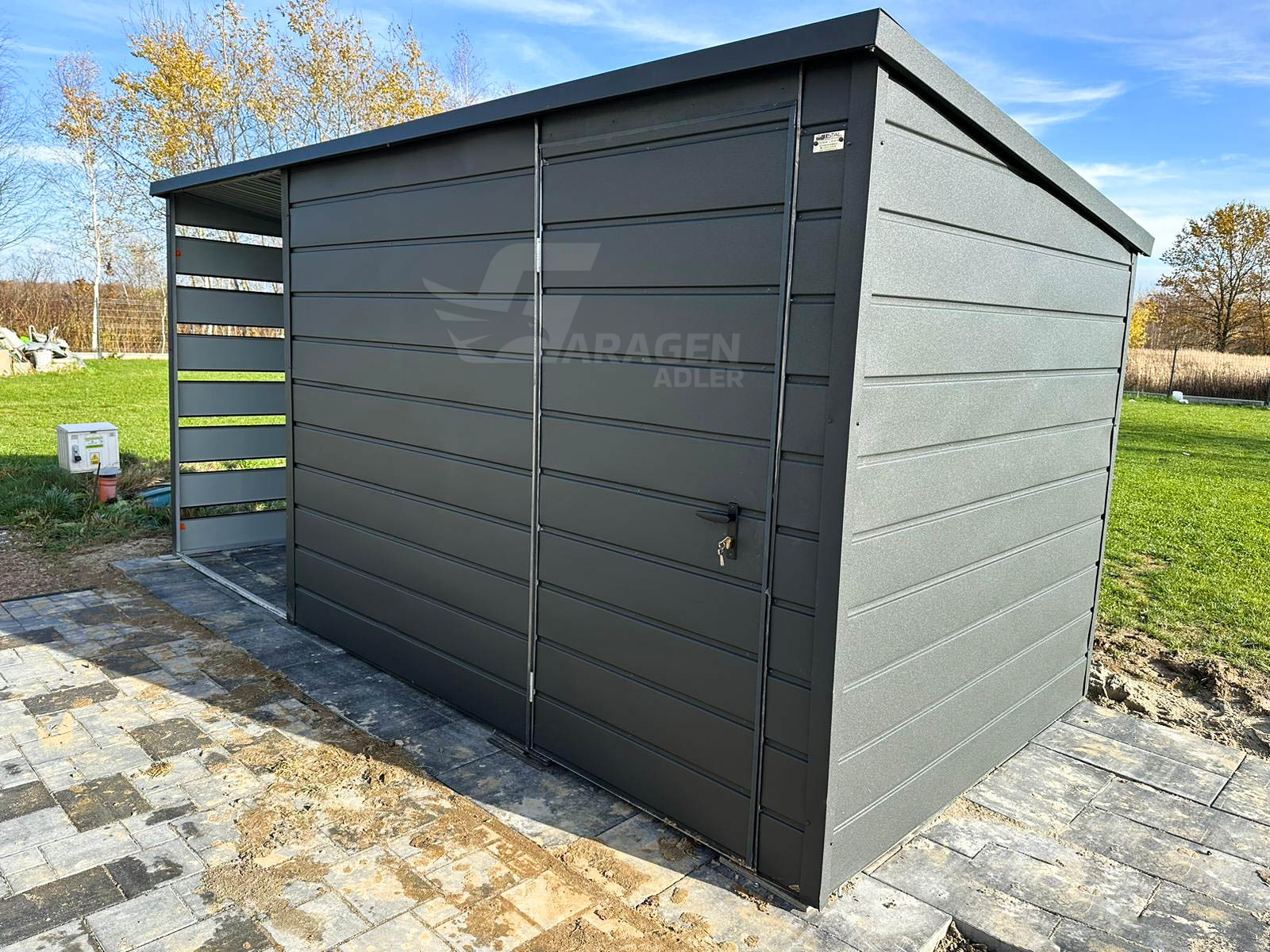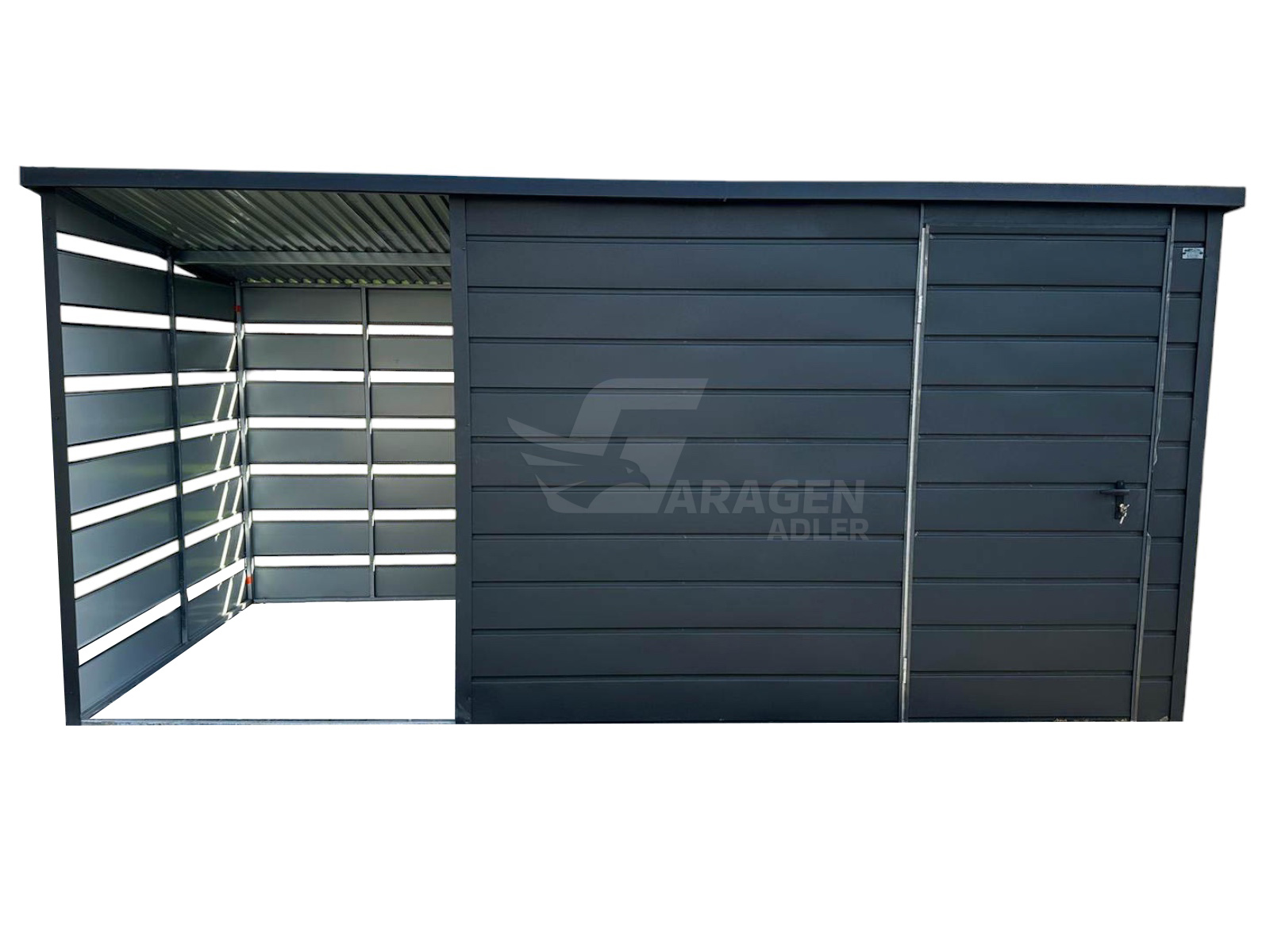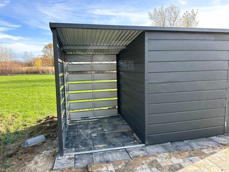 Gartenhaus 3x2m Überdachung 1,5×2 Tor Anthrazit Flachdach | ID436 |