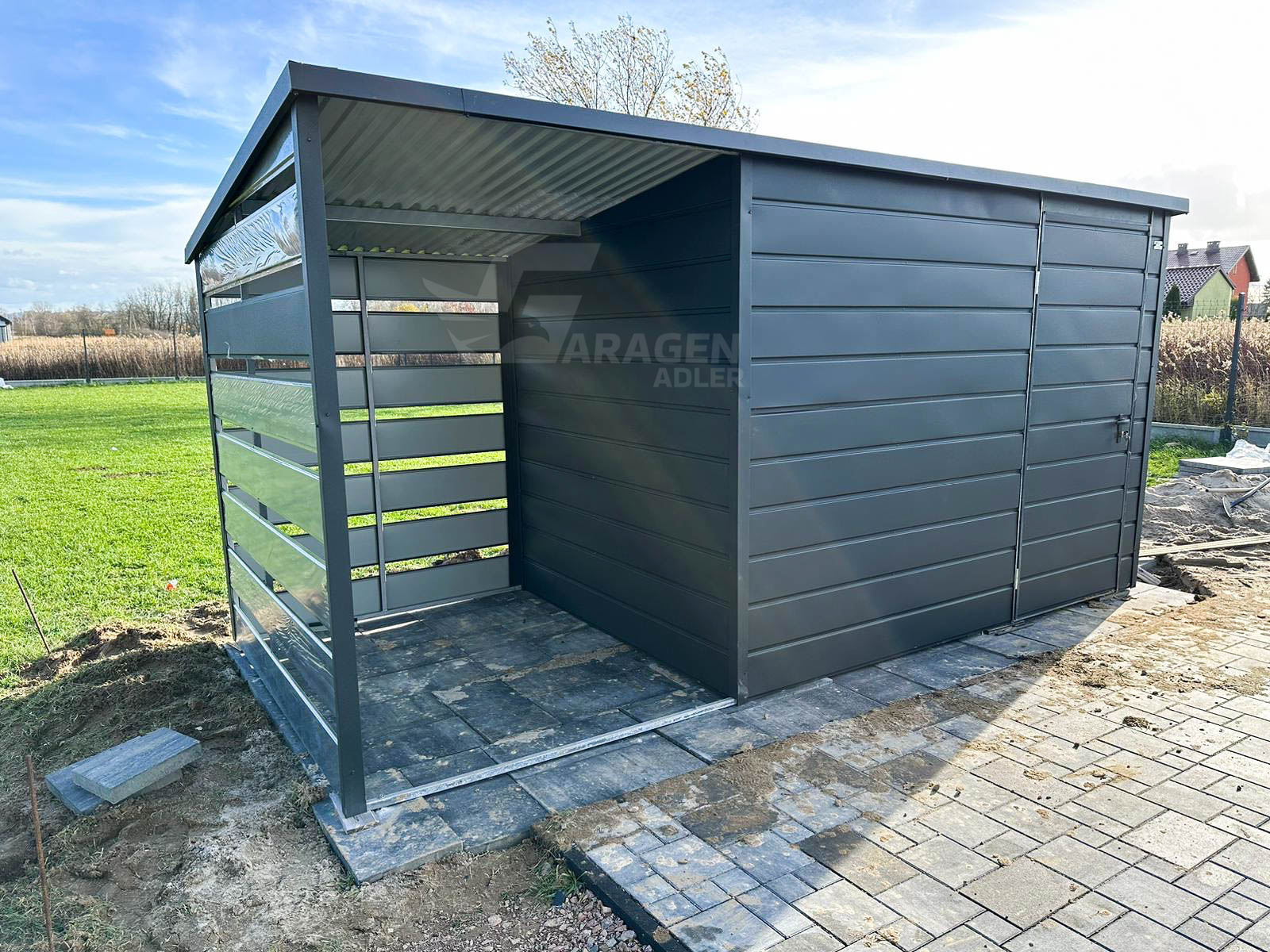 • Wir verwenden solide Verstärkungen der Konstruktion aus Winkeln, Trägern und geschlossenen Profilen Verstärkung des Daches durch einen Stahlrahmen+ Dachkonstruktion aus robusten, geschlossenen, feuerverzinkten ProfilenWir fertigen jede garage nach ihren wünschen. Bitte Kontaktieren sie uns, wenn sie irgendwelche fragen haben.
