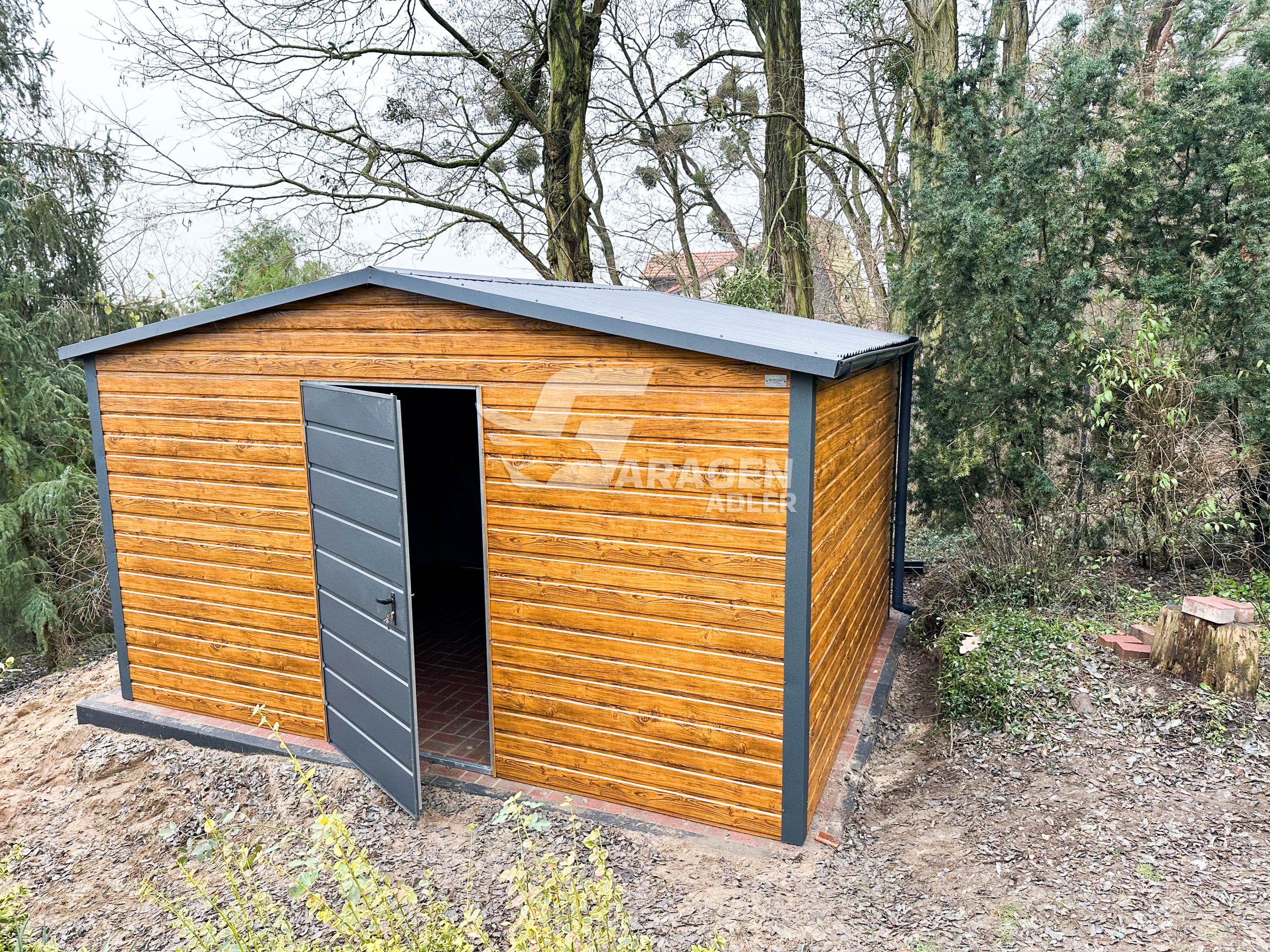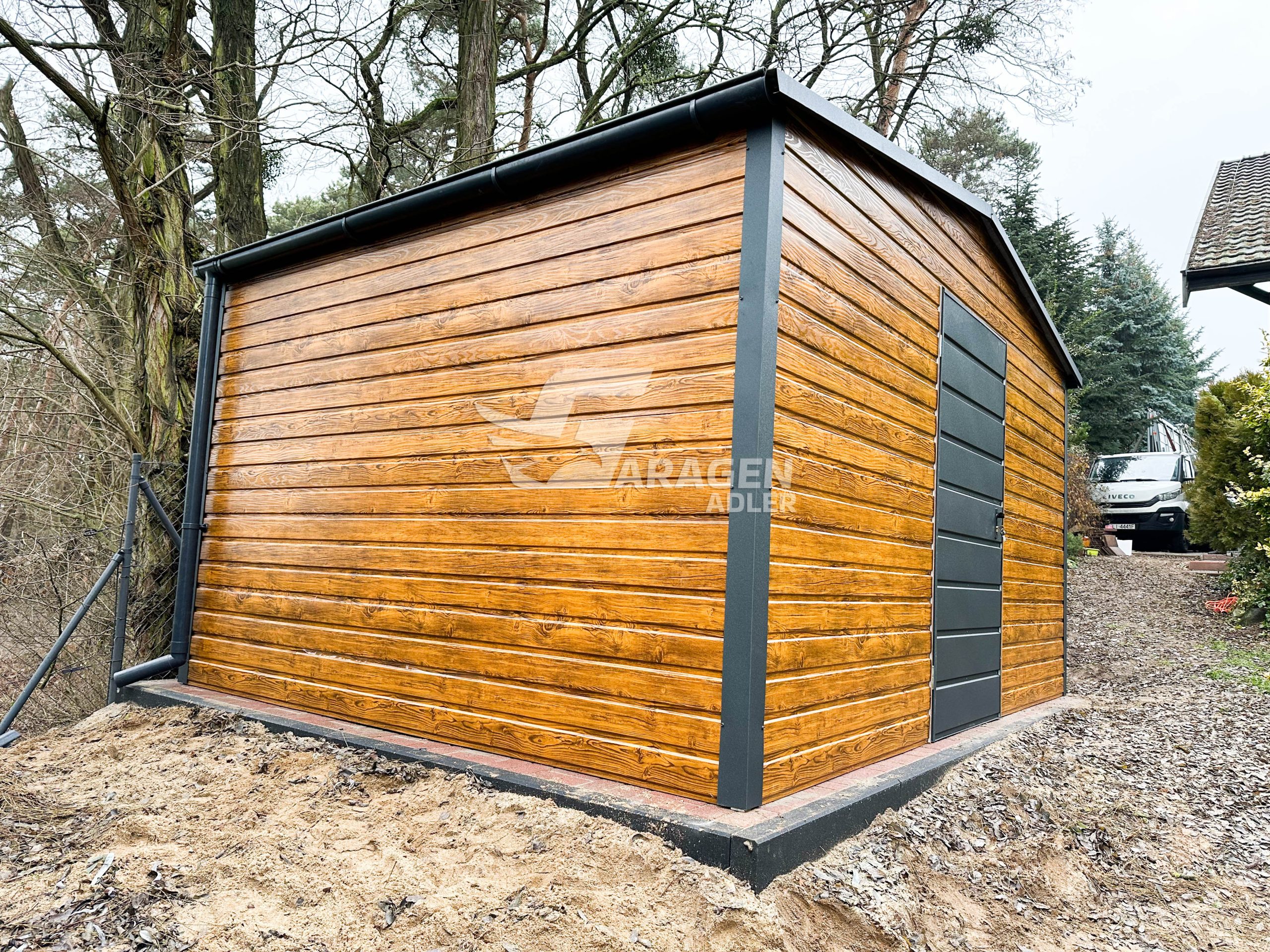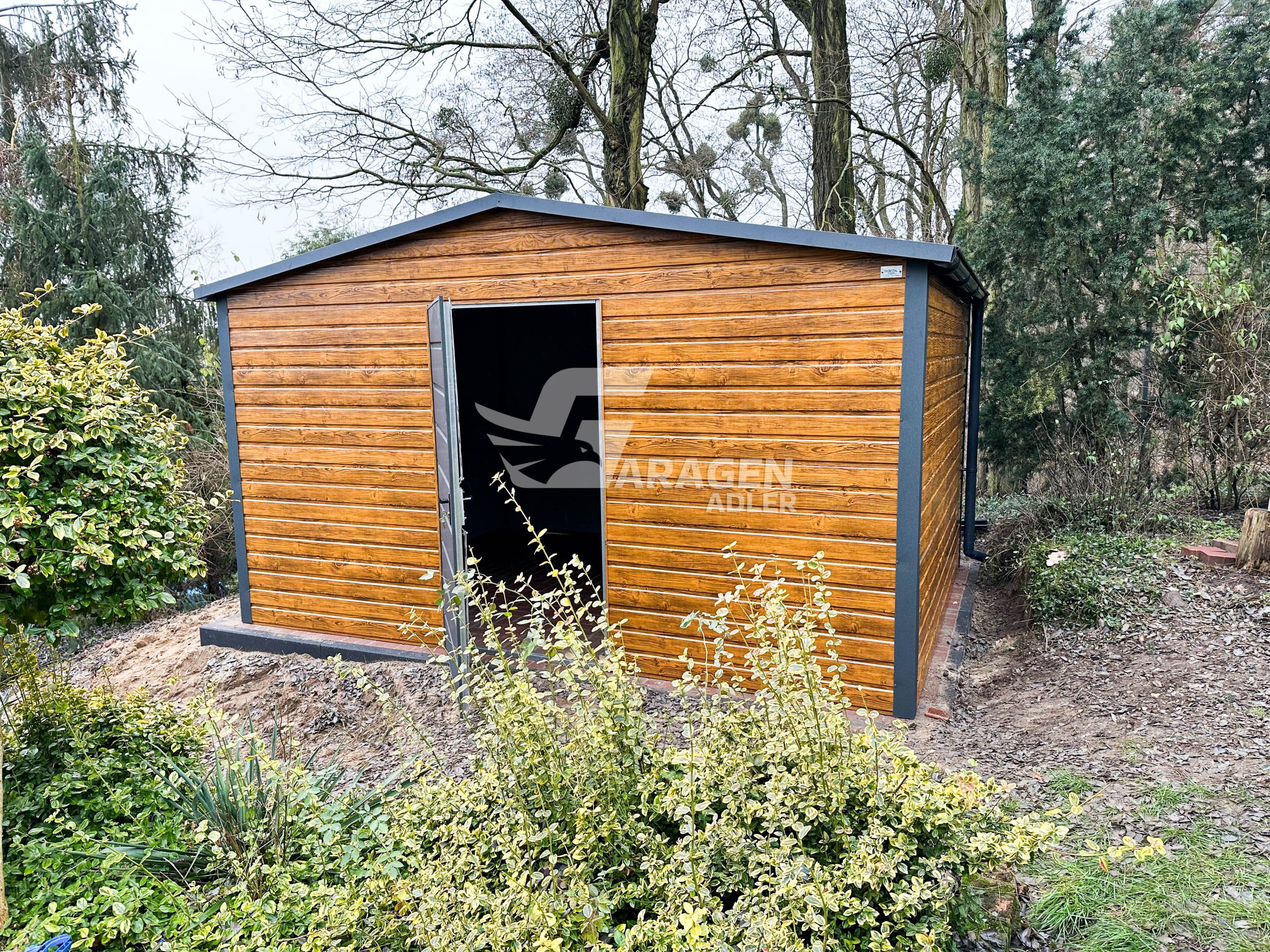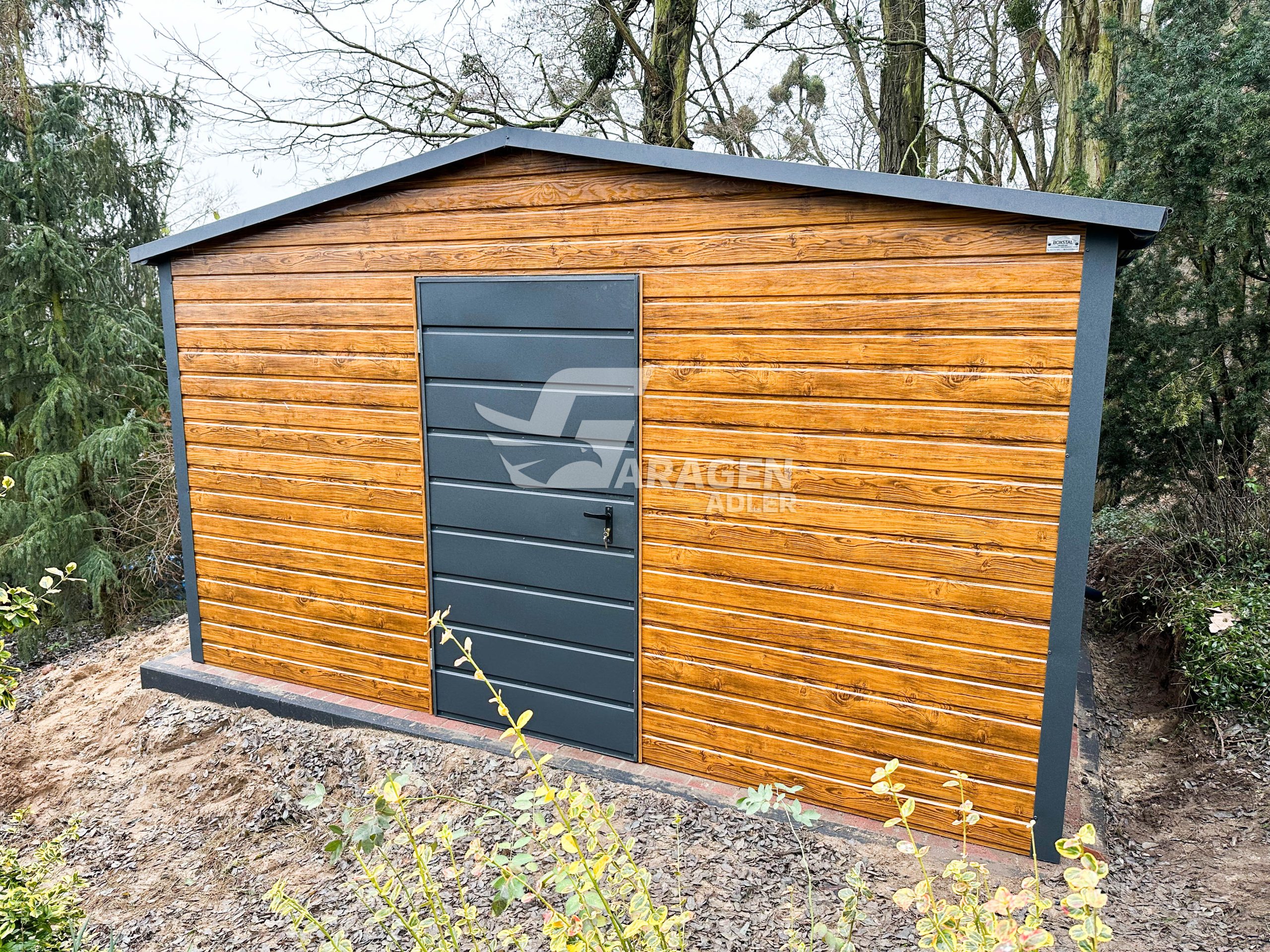 Gartenhaus 4x3m Dachrinnen Holzoptik Flachdach Anthrazit Satteldach ID441