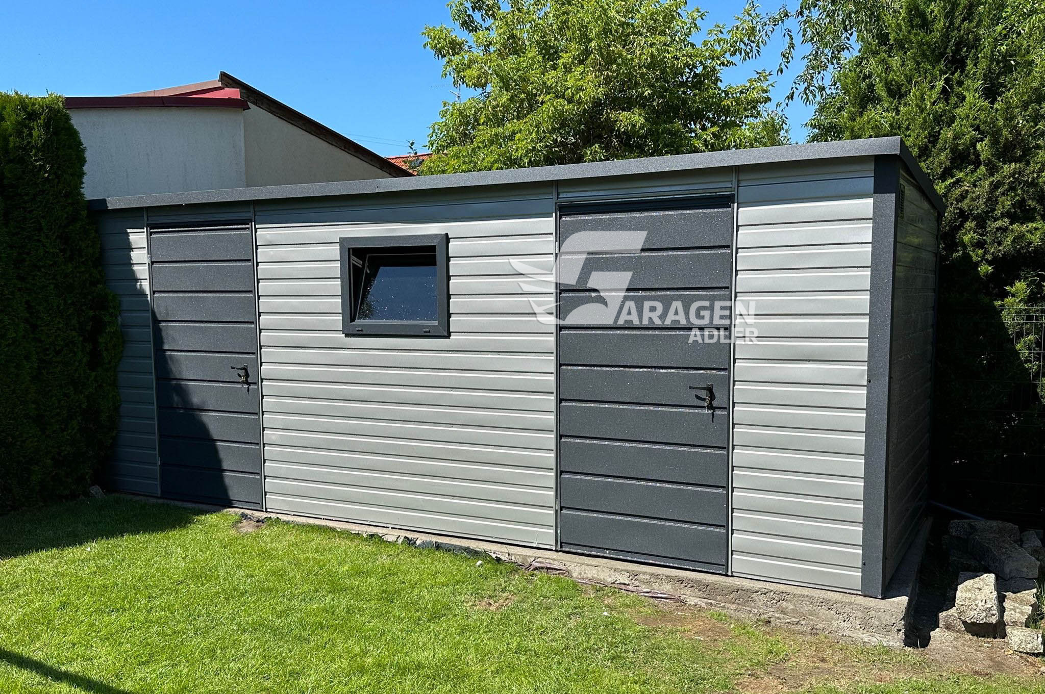Gartenhaus 6x2m 2x PVC Kippfenster Anthrazit Silver Pultdach | ID282 |