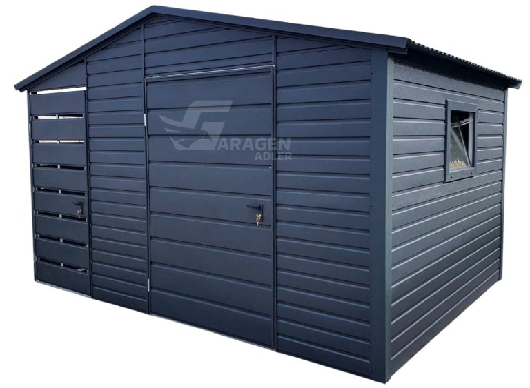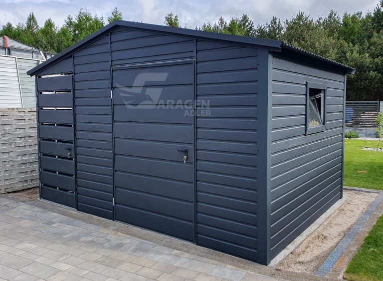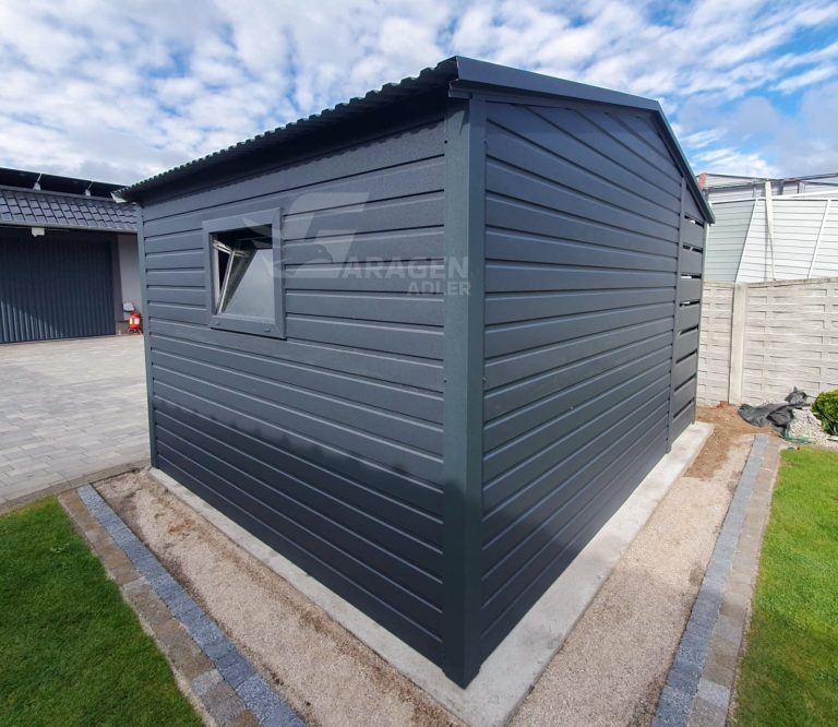 Gartenhaus – Gartenschuppen 2,5×2,5m + Überdachung 0,9m – PVC Kippfenster – Tür – Anthrazit – Satteldach | ID626 |