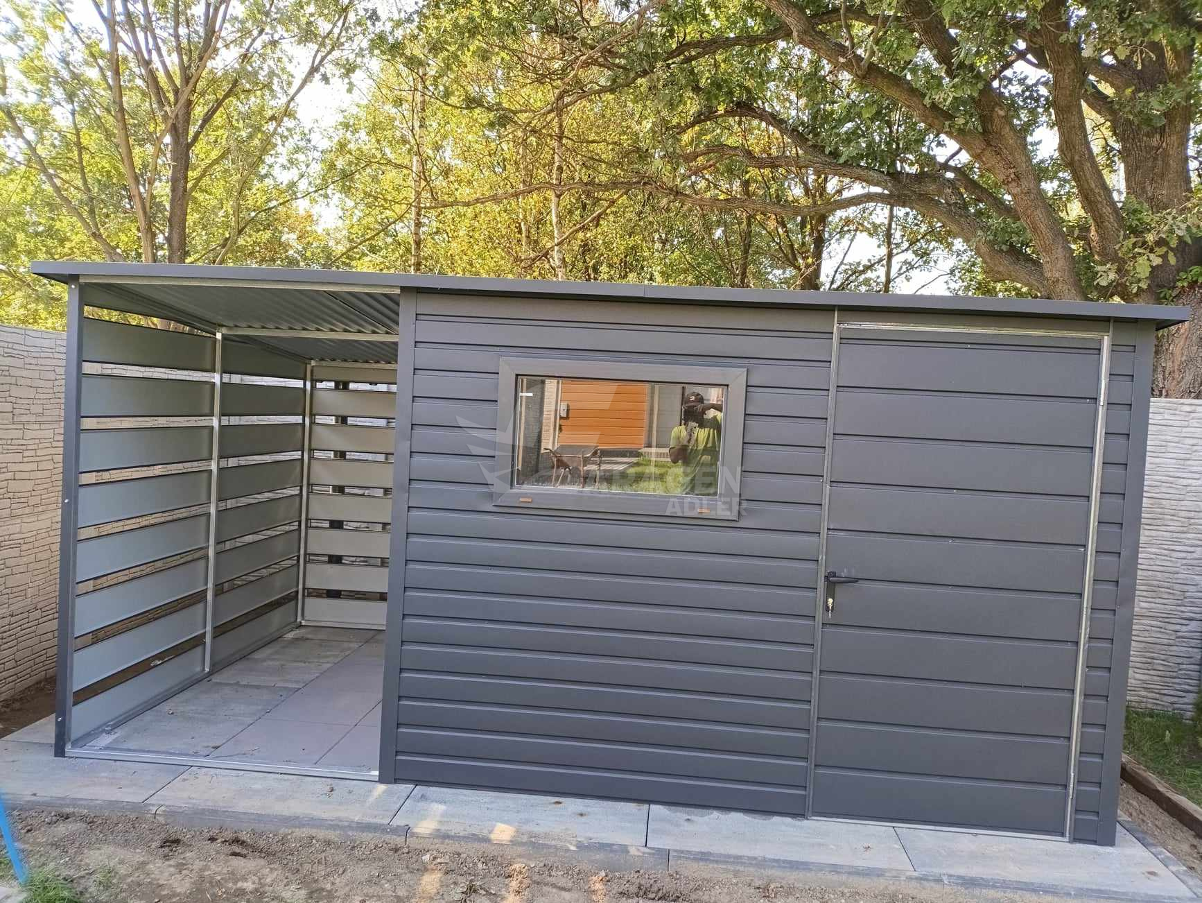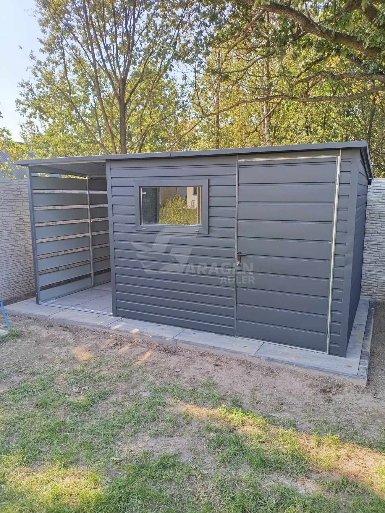 - Überdachung 1,5×2,5m mit Paneelen verkleidet.