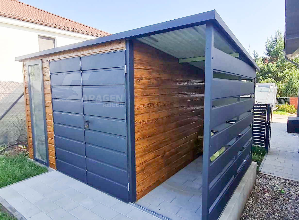 - Überdachung 1×2,5m Verkleidet mit Paneelen Farbe: Anthrazit Matte 7016