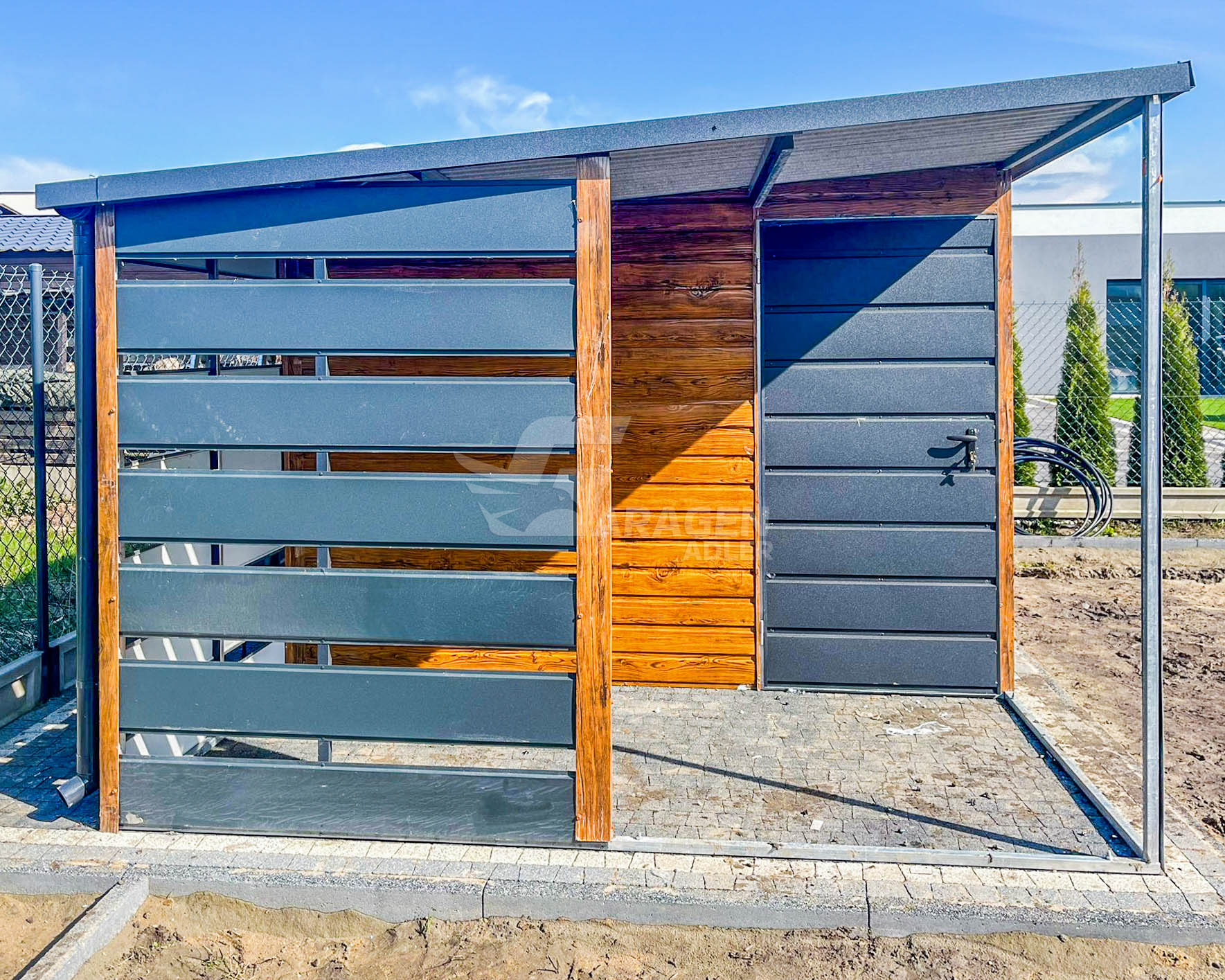 - Überdachung1,5x3m Die Seiten- und Rückwand sind mit Paneelen verkleidet