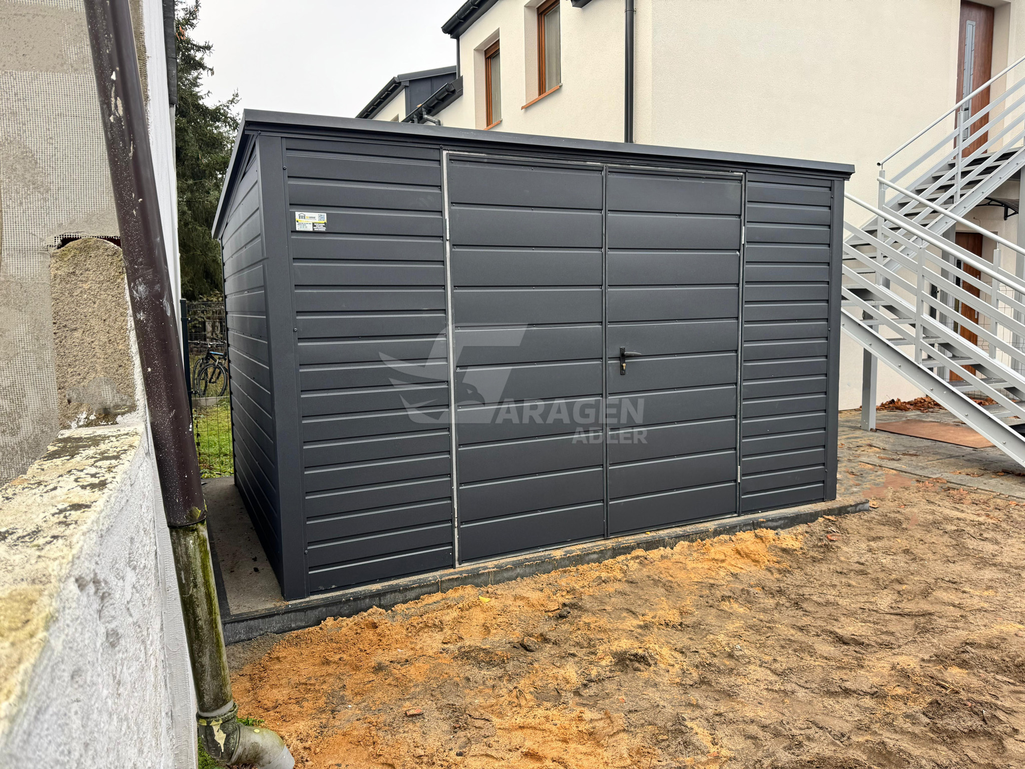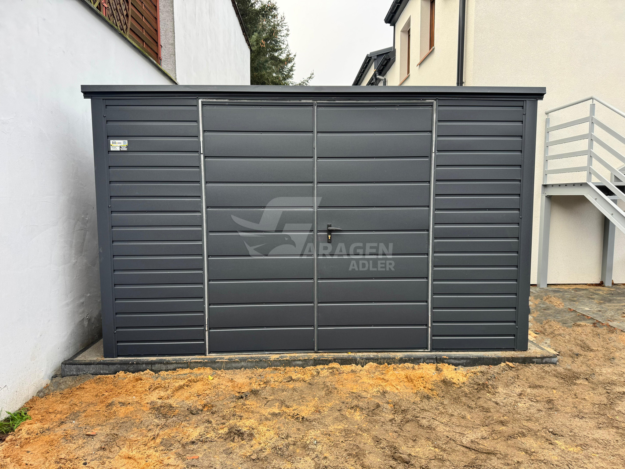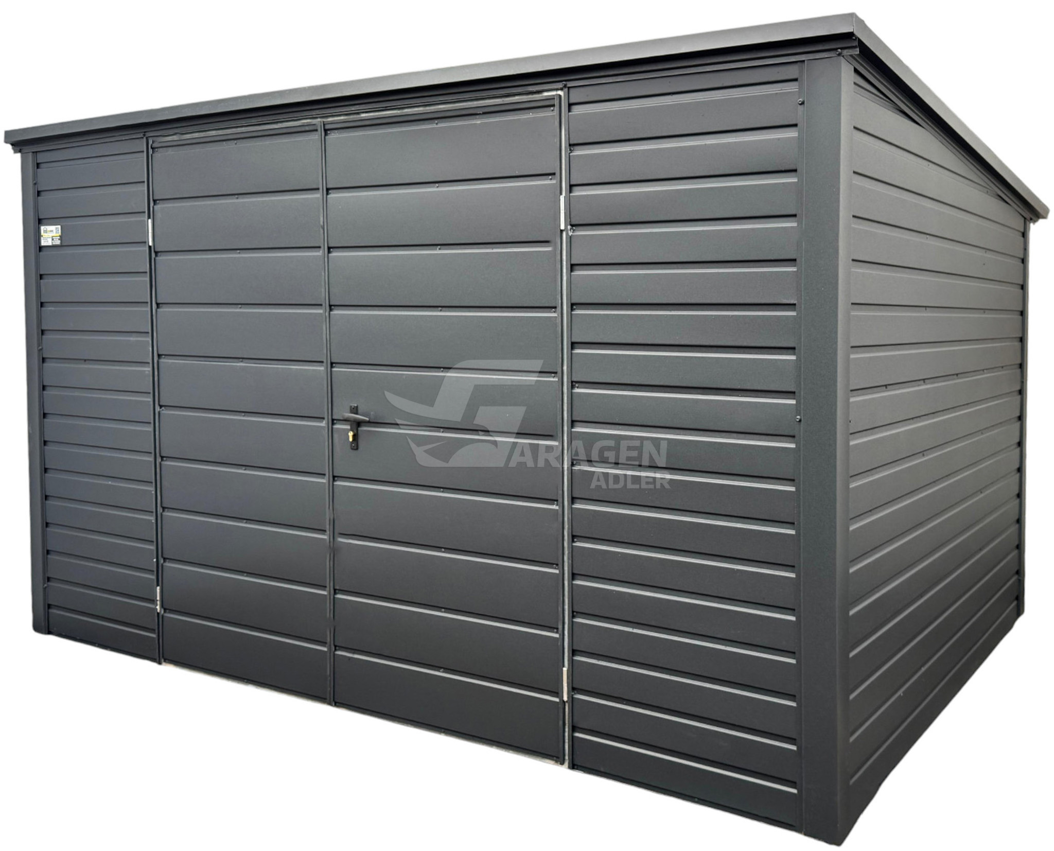 Gartenhaus – Gartenschuppen 4×2,5m – Zweiflügeliges Tor – Anthrazit – Flachdach | ID884 |