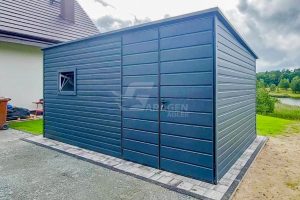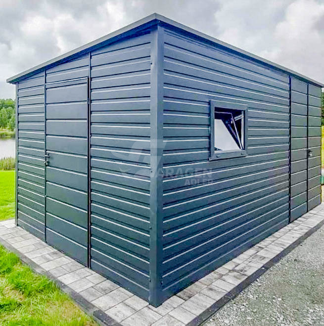 Gartenhaus – Gartenschuppen 4×2,5m – Zweiflügeliges Tor – Tür – PVC Kippfenster – Anthrazit – Flachdach | GP436 |