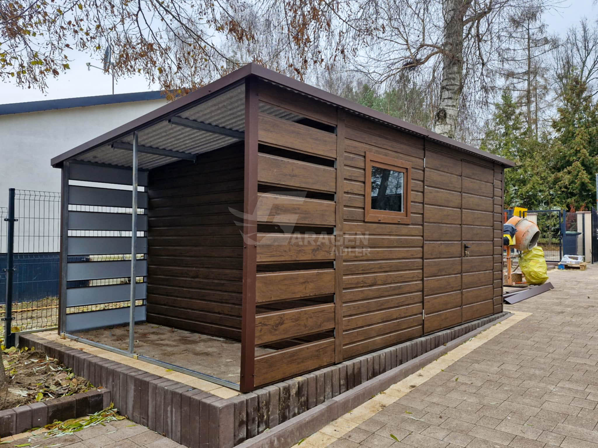 - Überdachung 1x3m Die Rück- und Vorderwand sind mit Paneelen verkleidet. Farbe : Dunkles Walnussholz