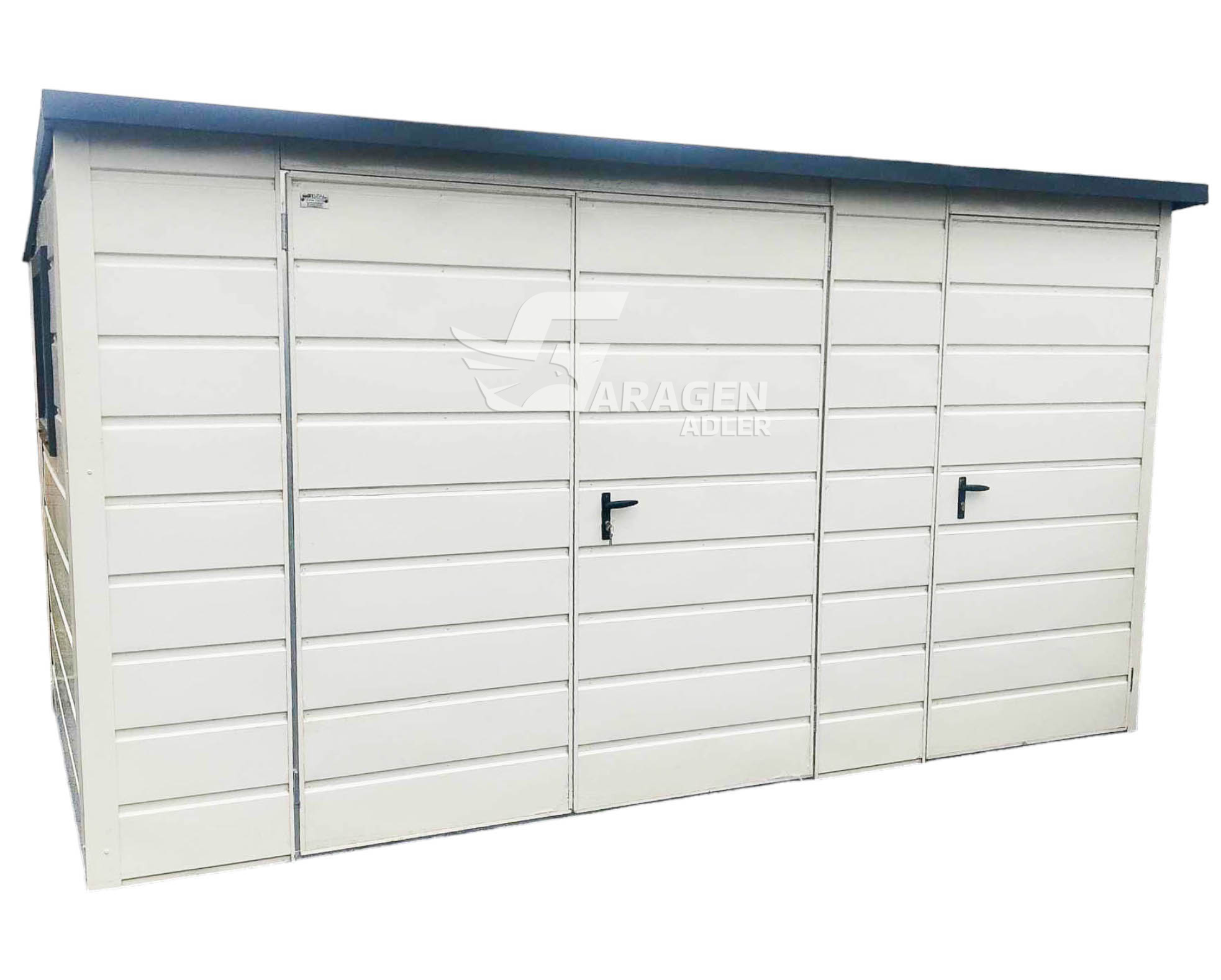 - Zweiflügeliges Tor 180x200cm Horizontal Blech T17 Farbe: Weiß Ral 9010