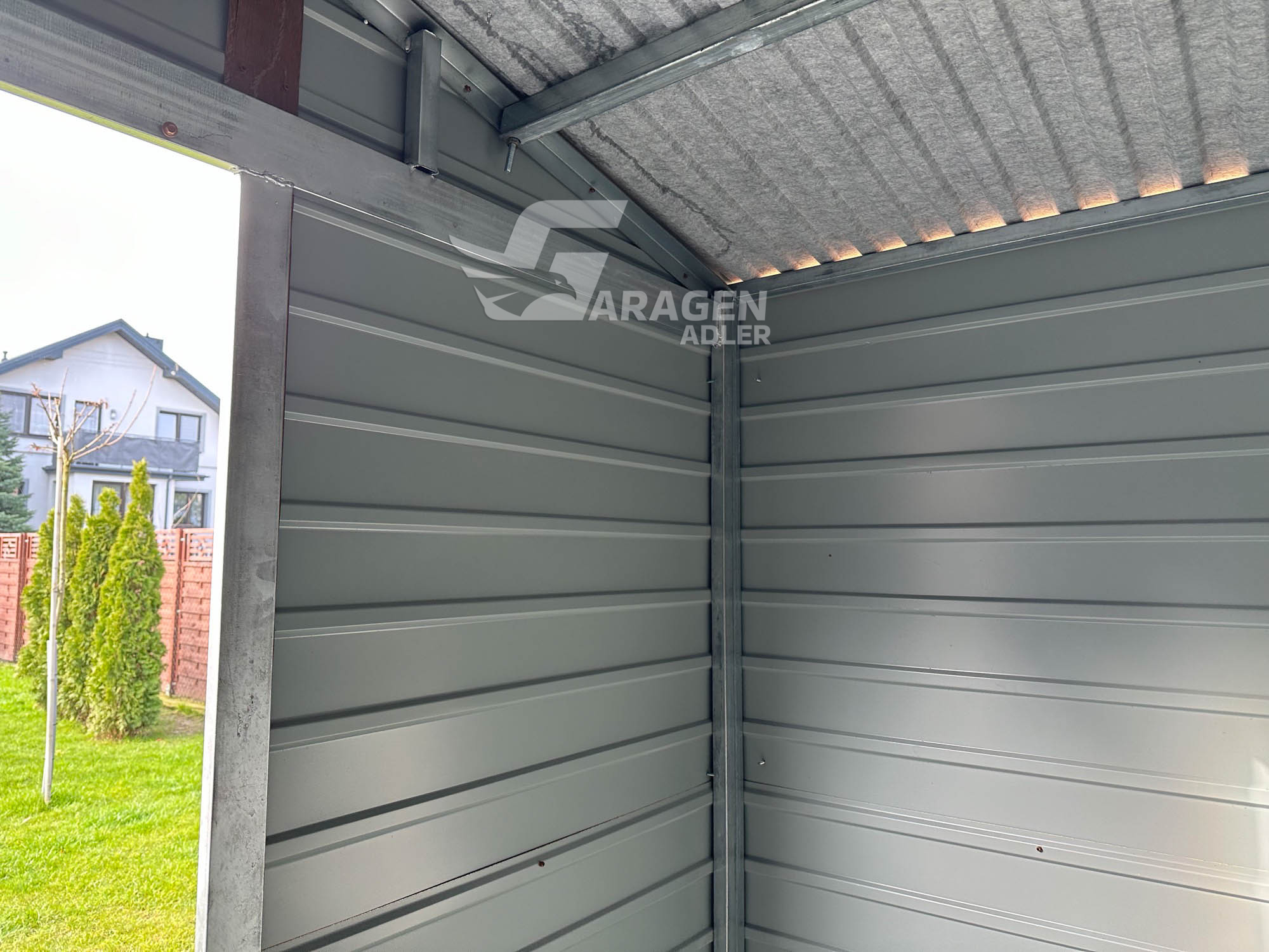 - Wir verwenden solide Verstärkungen der Konstruktion aus Winkeln, Trägern und geschlossenen ProfilenVerstärkung des Daches durch einen Stahlrahmen+Dachkonstruktion aus robusten, geschlossenen, feuerverzinkten Profilen