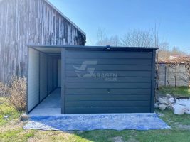 Blechgarage 3×4,5m + Überdachung 1m – Schwingtor – Anthrazit – Flachdach | GP579 |