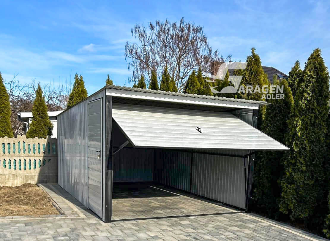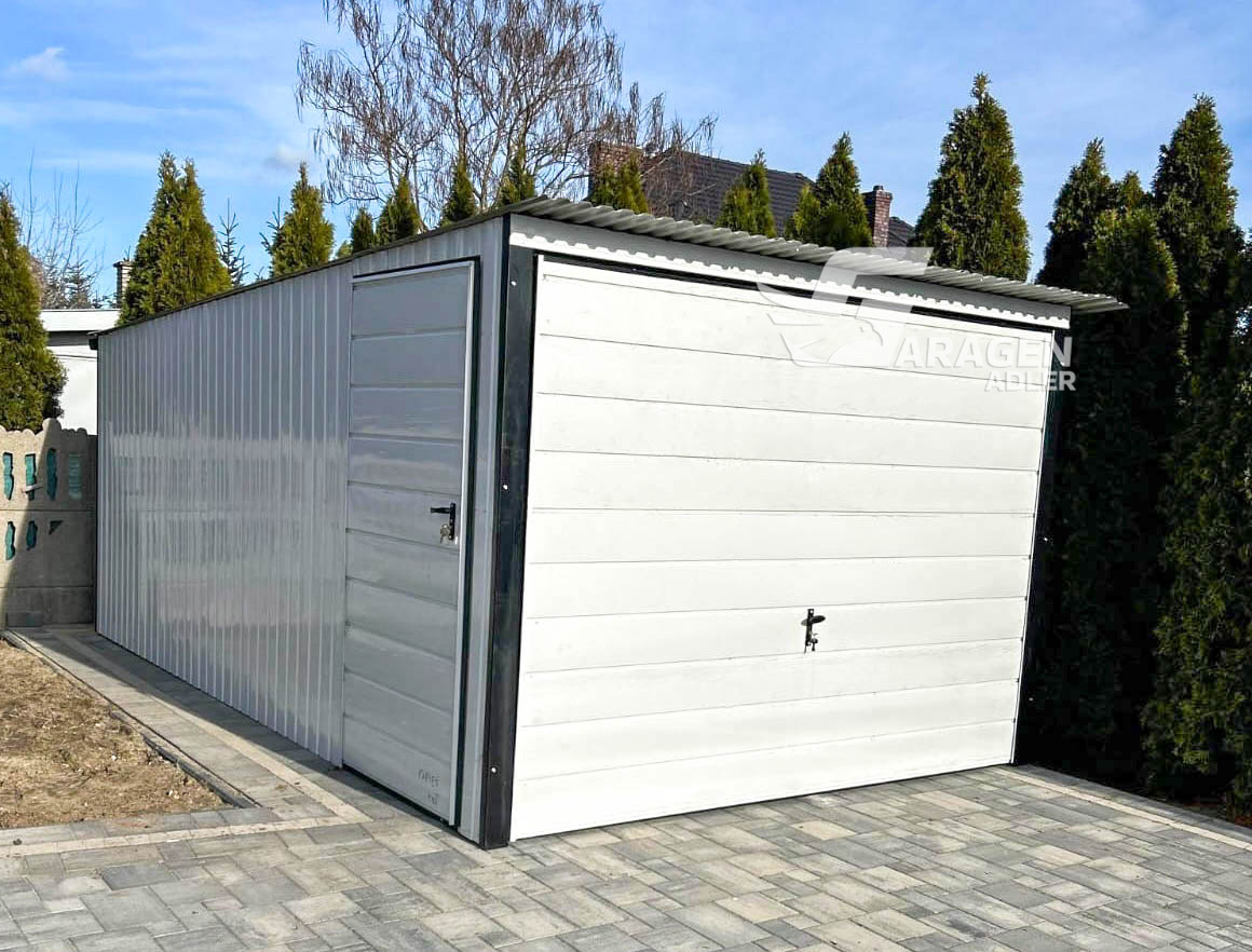 Blechgarage 3x5m – Schwingtor – Tür – Weiß – Flachdach GP275