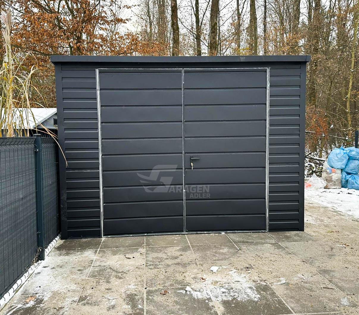 Dachkonstruktion aus robusten, geschlossenen, feuerverzinkten ProfilenWir fertigen jede garage nach ihren wünschen. Bitte Kontaktieren sie uns, wenn sie irgendwelche fragen haben.