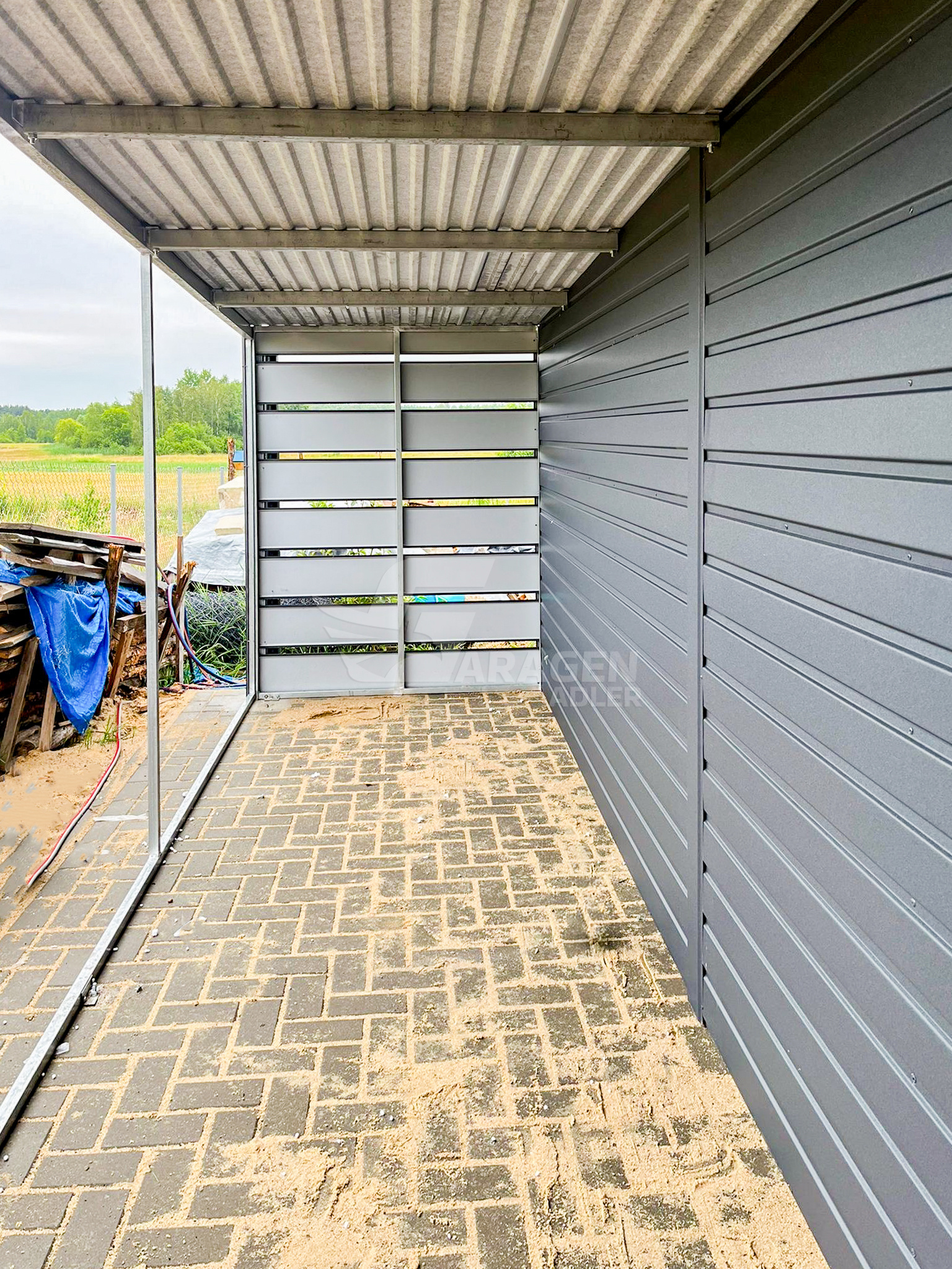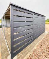 - Überdachung 1,2x6m Die Rück- und Vorderwand sind mit Paneelen verkleidetkolor Farbe: Anthrazit Matte 7016