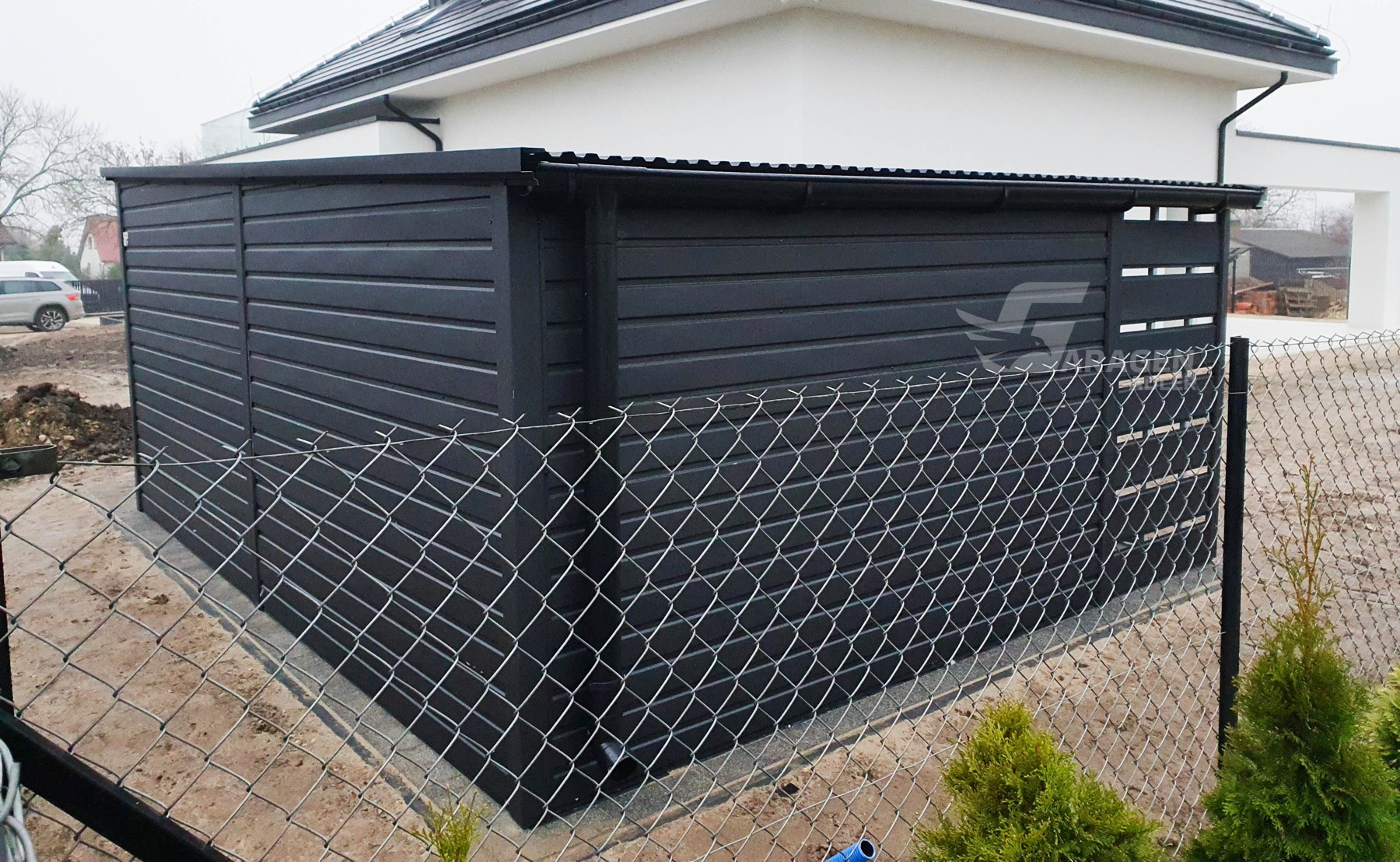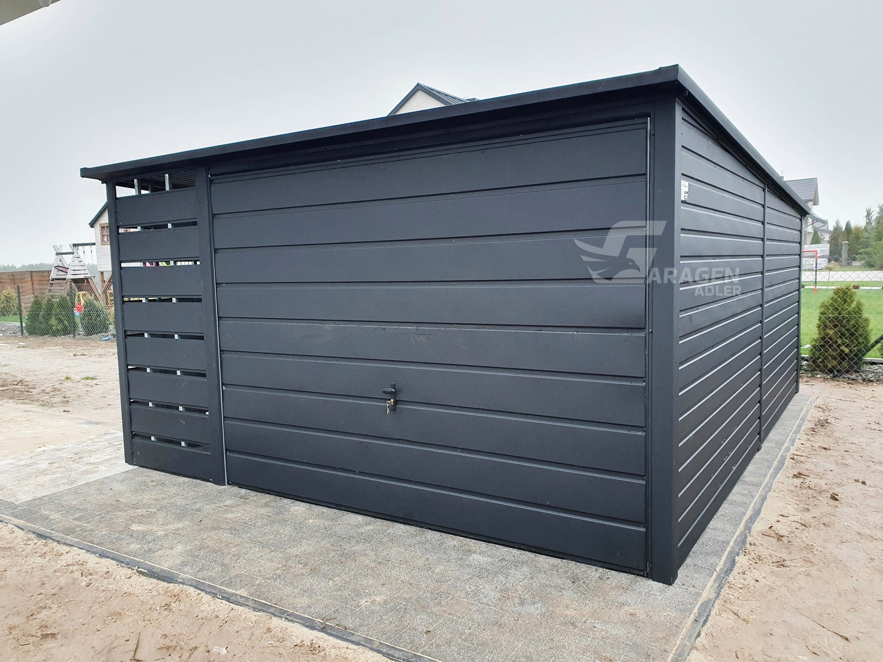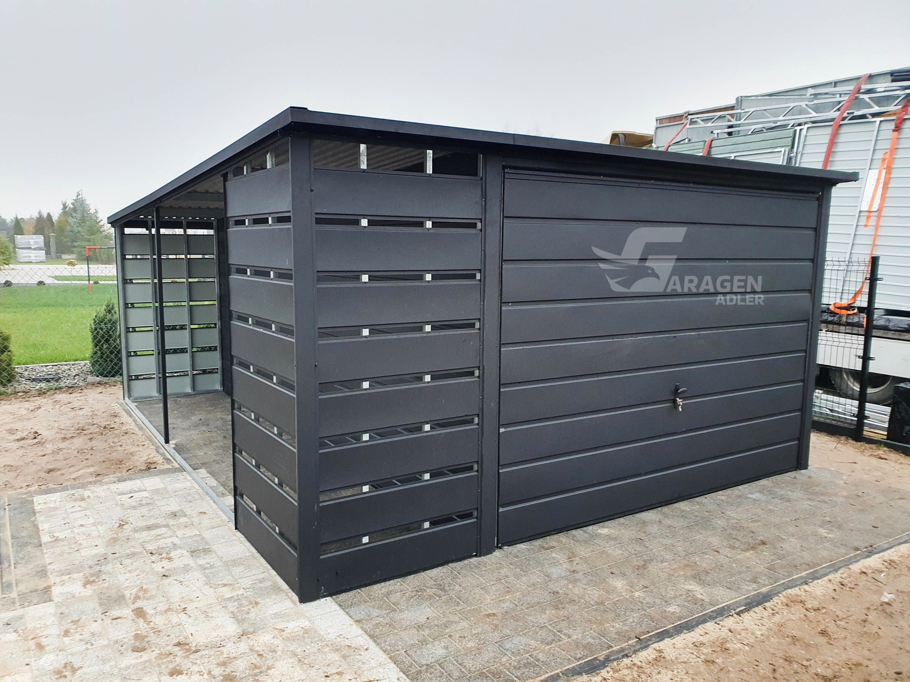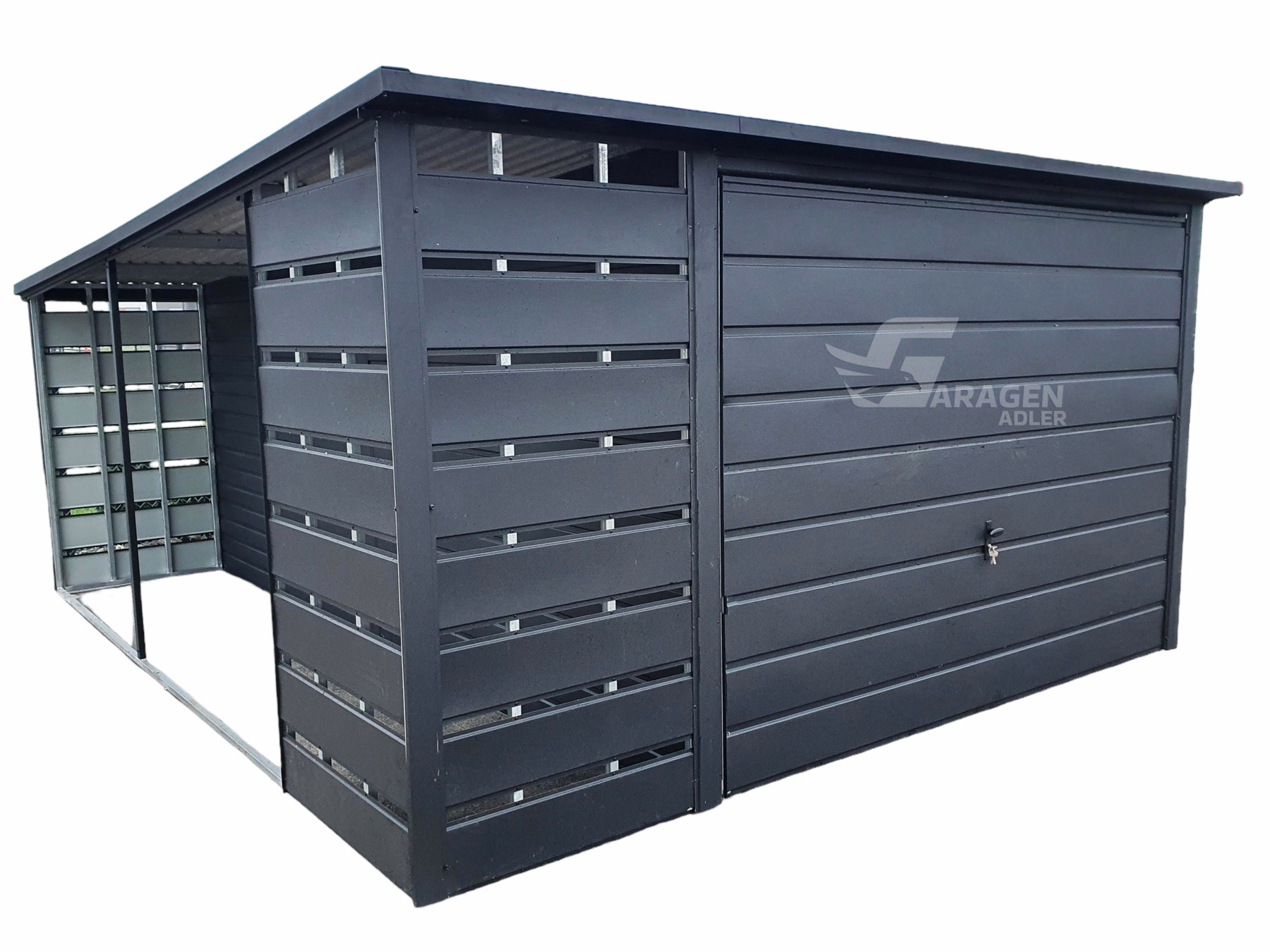 Dachkonstruktion aus robusten, geschlossenen, feuerverzinkten ProfilenWir fertigen jede garage nach ihren wünschen. Bitte Kontaktieren sie uns, wenn sie irgendwelche fragen haben.