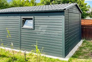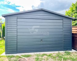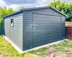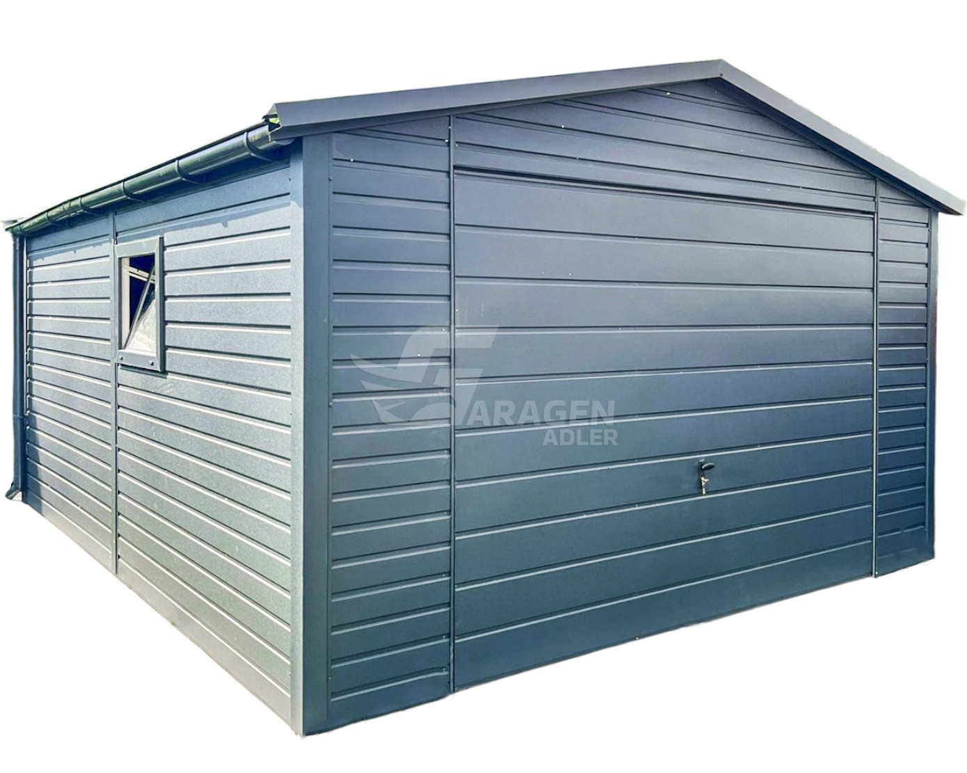 Blechgarage 4×5,5m – Schwingtor – PVC Kippfenster – Anthrazit – Dachrinnen Metalldachziegel- Satteldach | ID675 |