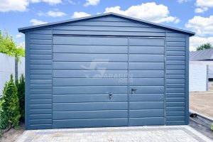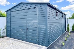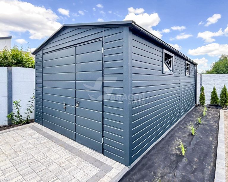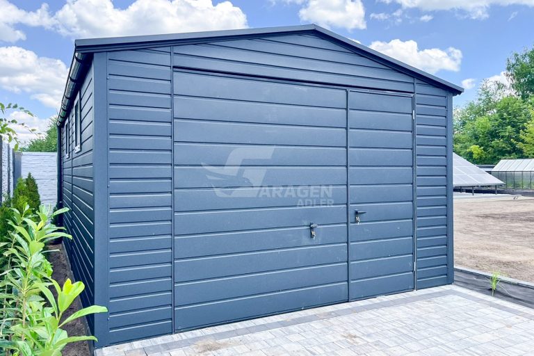 Blechgarage 4x6m – Schwingtor – Tür – 2x PVC Kippfenster – Anthrazit – Satteldach ID678