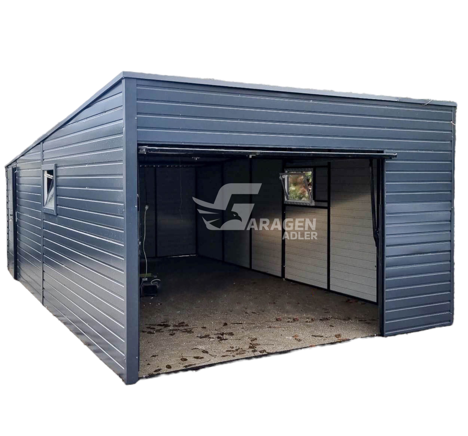 Blechgarage 4x7m – Schwingtor + Zusätzliche Tür – | GP112 |