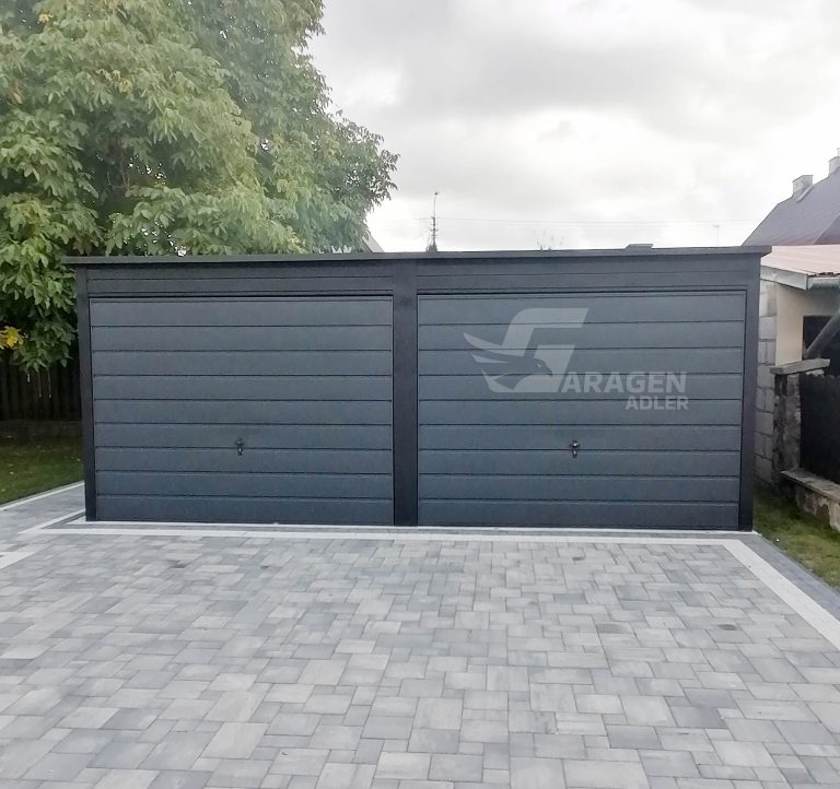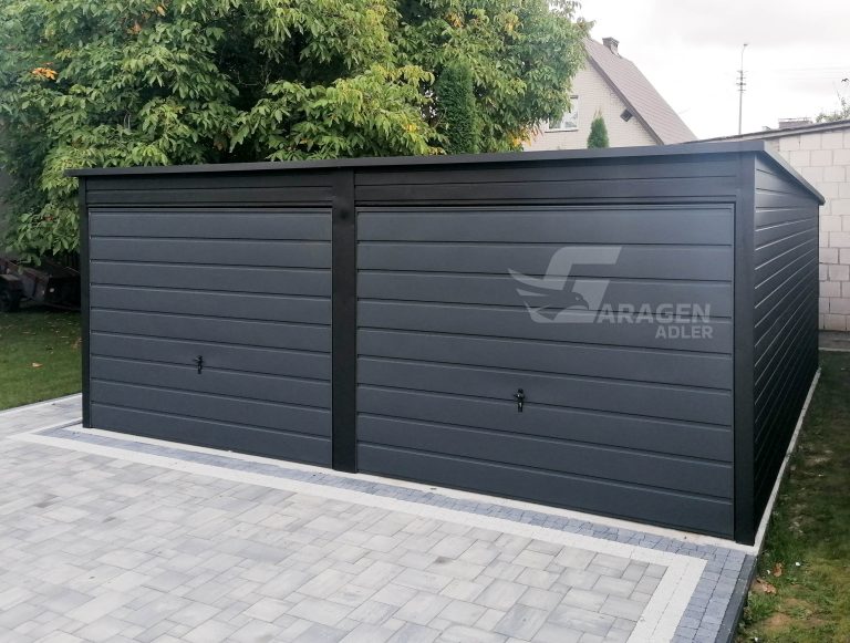 Blechgarage 6x5m 2x Schwingtor Anthrazit Pultdach GP124