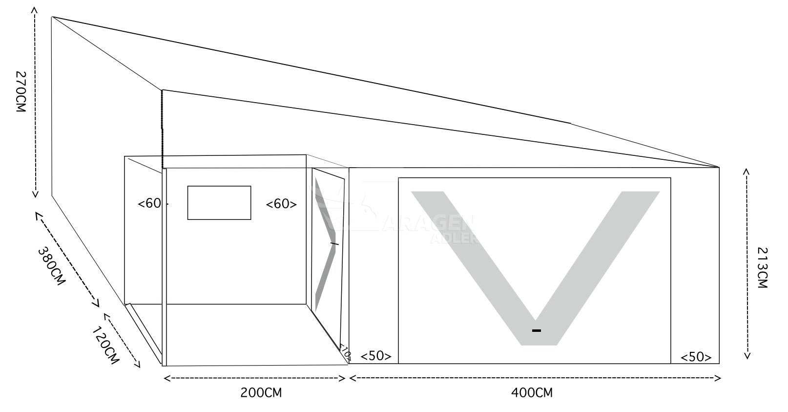 - Höhe der rechten Wand : 213 cm