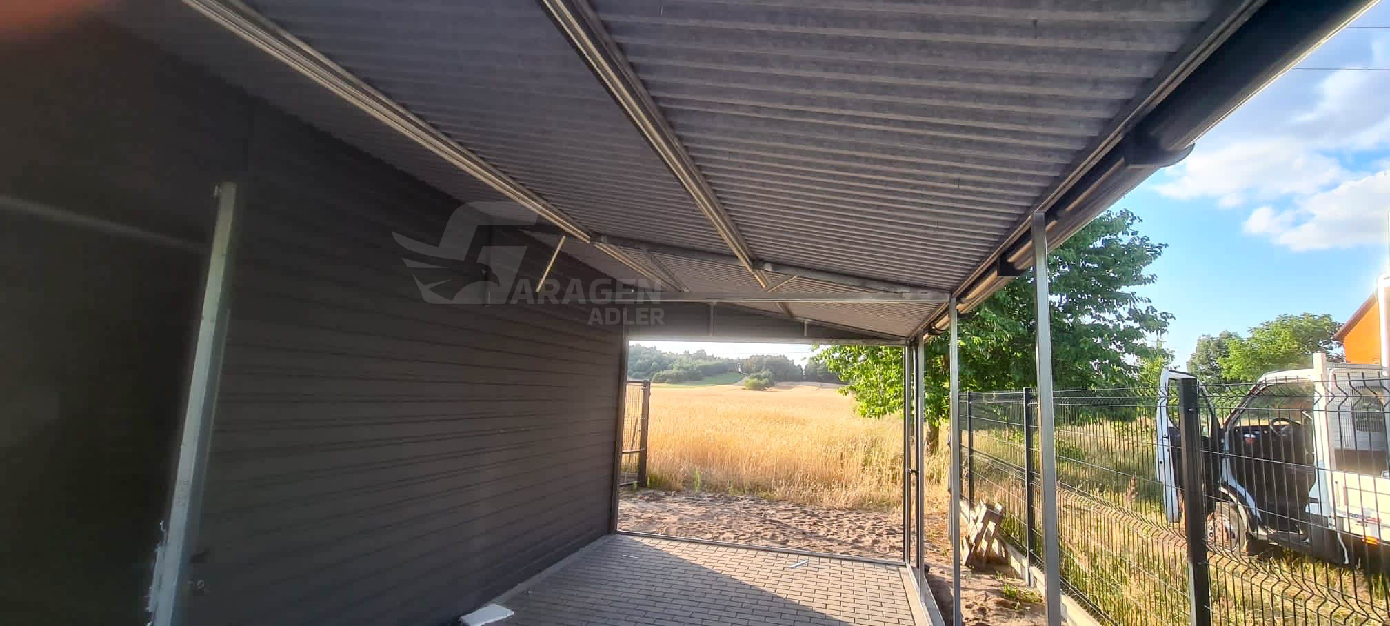 Dachkonstruktion aus robusten, geschlossenen, feuerverzinkten Profilen