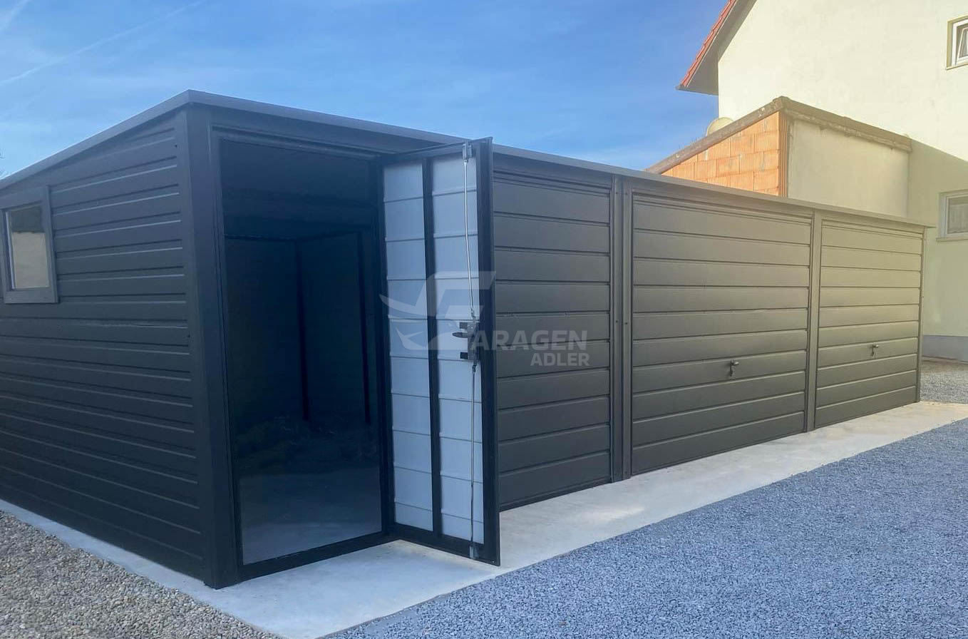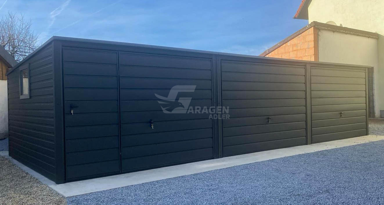 Dachkonstruktion aus robusten, geschlossenen, feuerverzinkten ProfilenWir fertigen jede garage nach ihren wünschen. Bitte Kontaktieren sie uns, wenn sie irgendwelche fragen haben.