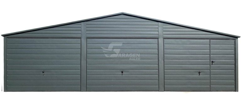 Blechgarage 9x6m – 3x Schwingtor – Tür – Anthrazit – Satteldach GP556