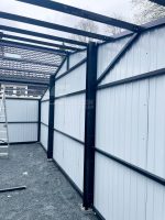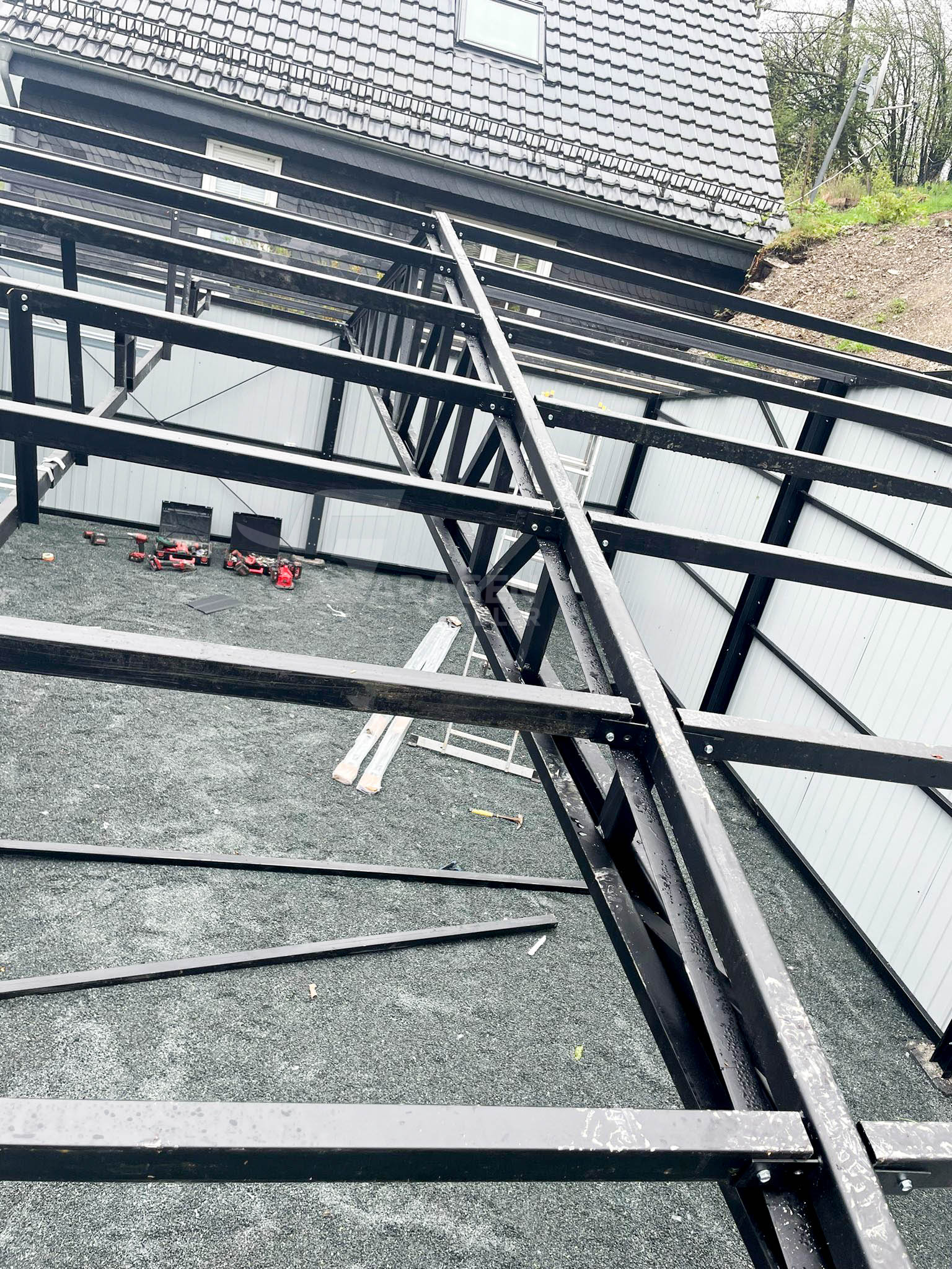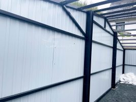 • Rahmenkonstruktion aus Vierkanteisen 30×30 mm, 30x50mm, 40×60+Konstruktion aus Stahl Winkeleisen 40×40 mm -Kantenschutzbeschläge (ästhetischer Abschluss des Daches und der Ecken)