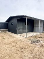 • Überdachung   2x6m mit einer vollständig geschlossenen Rückwand aus Blech.