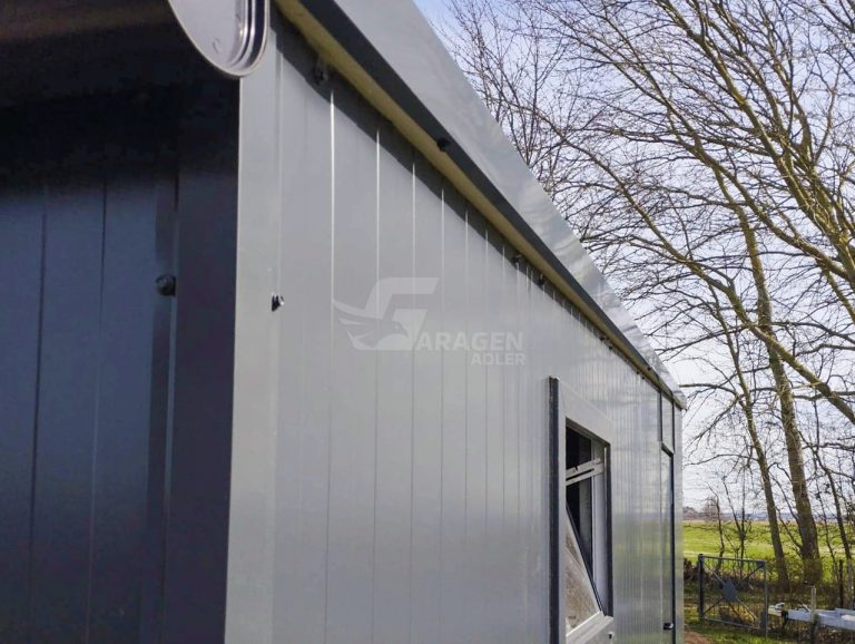 Dachkonstruktion aus robusten, geschlossenen, feuerverzinkten ProfilenWir fertigen jede garage nach ihren wünschen. Bitte Kontaktieren sie uns, wenn sie irgendwelche fragen haben.