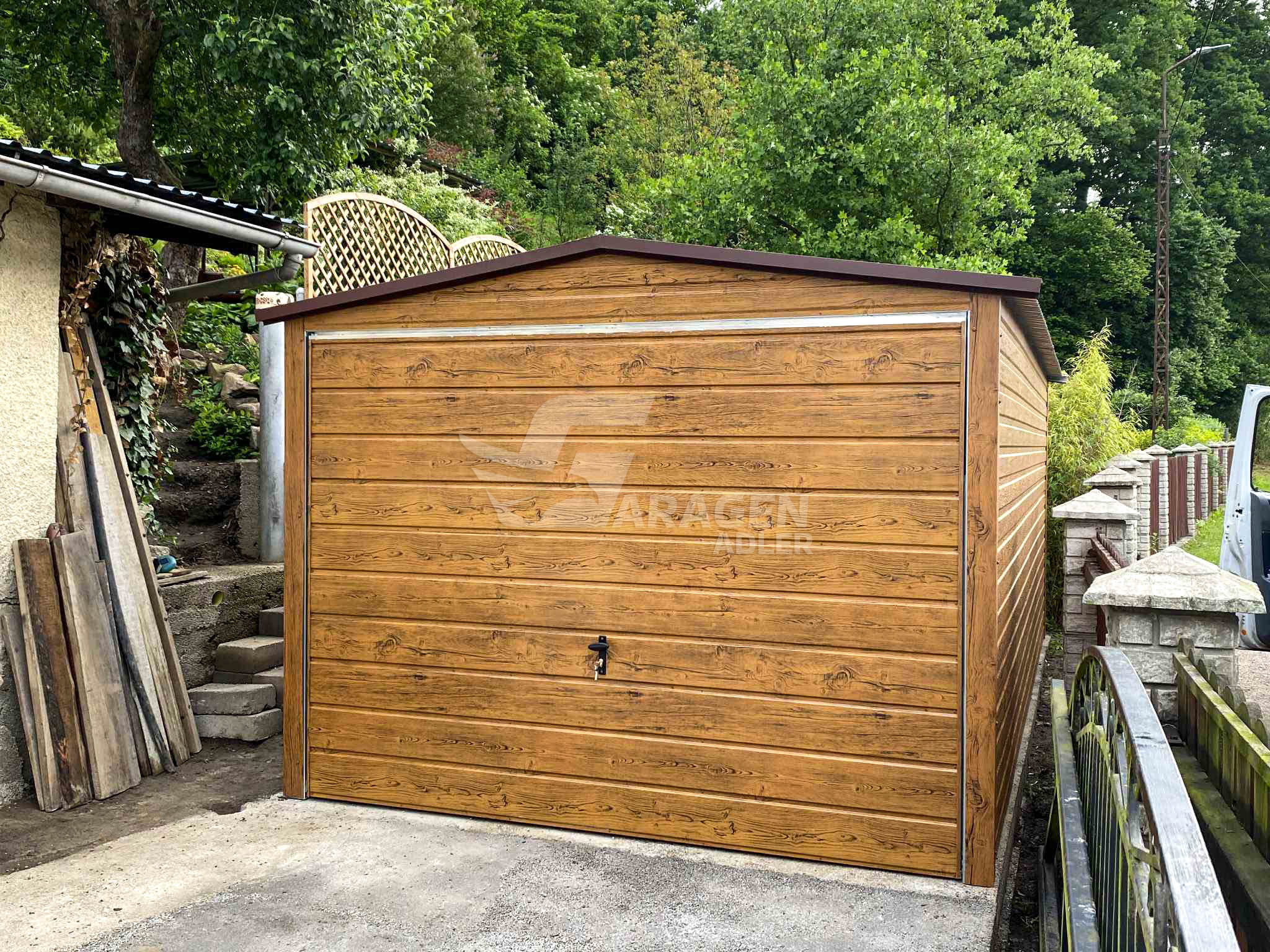 Dachkonstruktion aus robusten, geschlossenen, feuerverzinkten ProfilenWir fertigen jede garage nach ihren wünschen. Bitte Kontaktieren sie uns, wenn sie irgendwelche fragen haben.