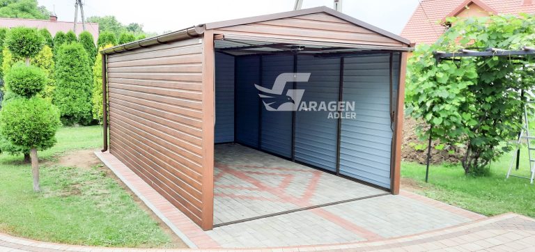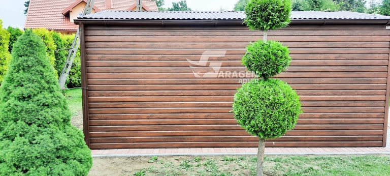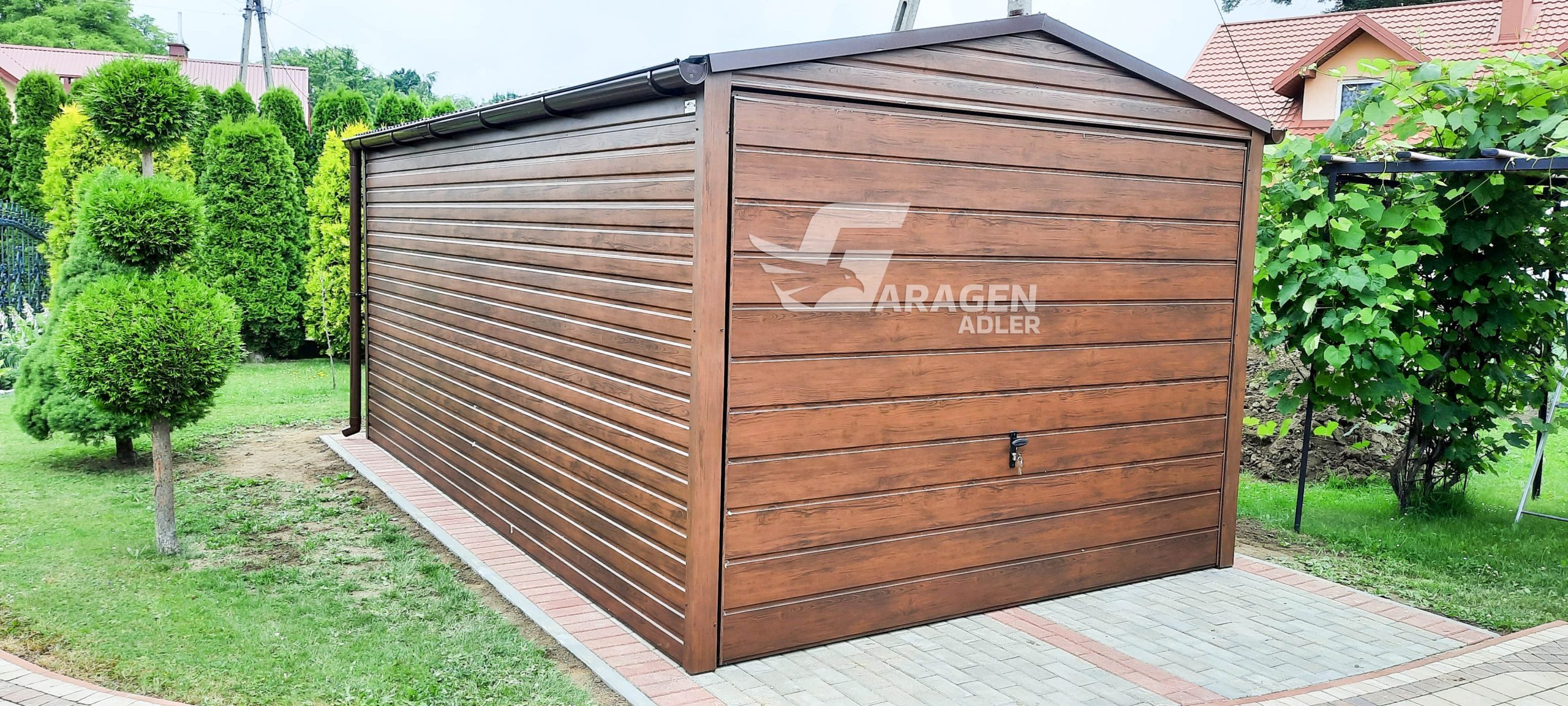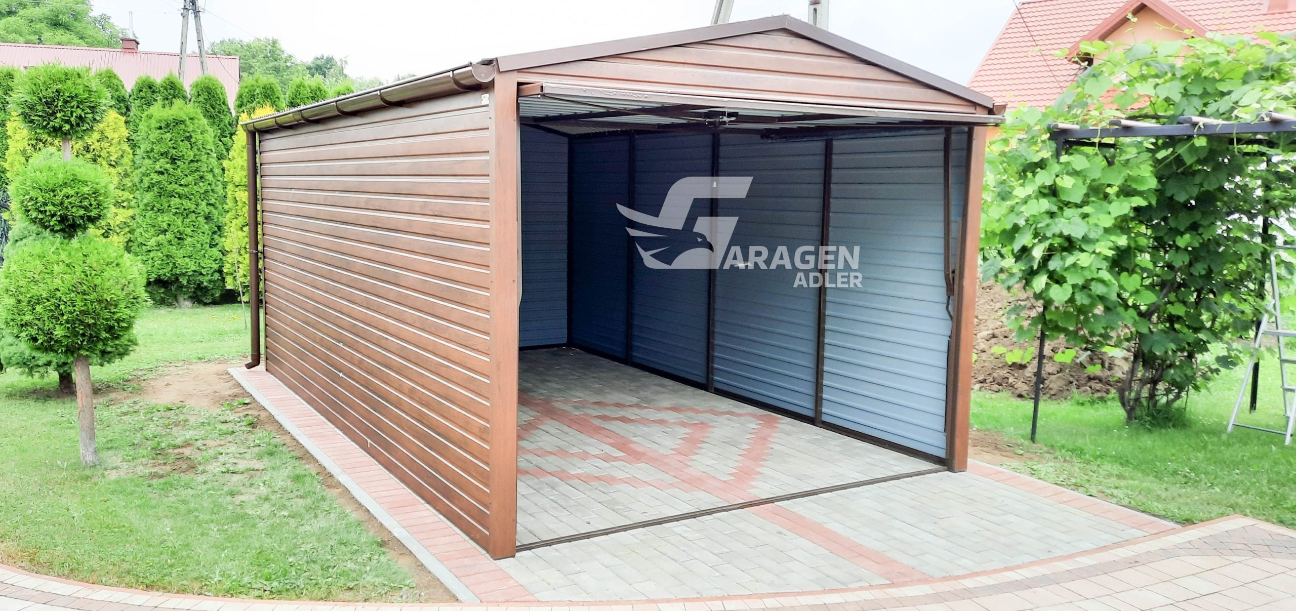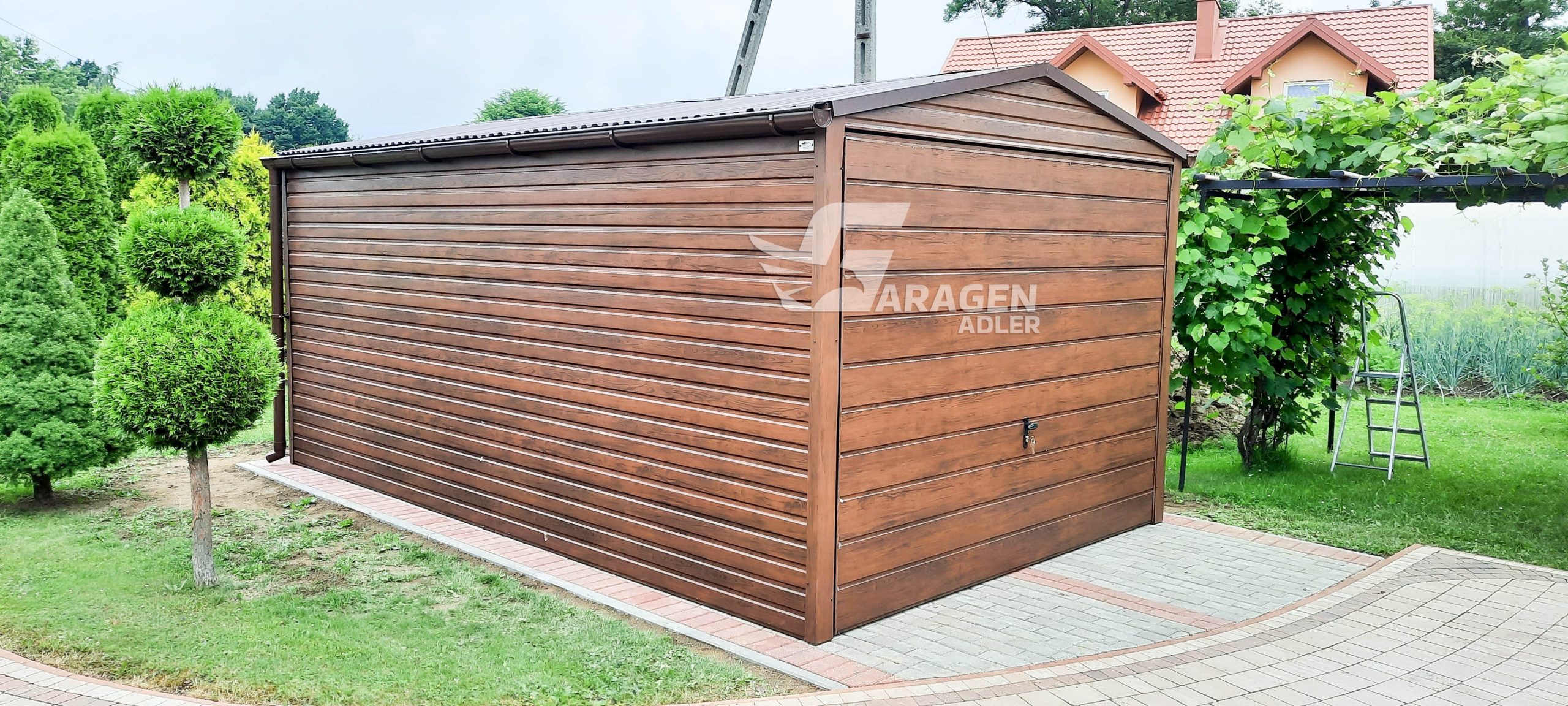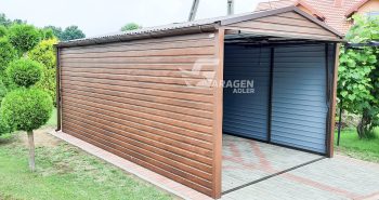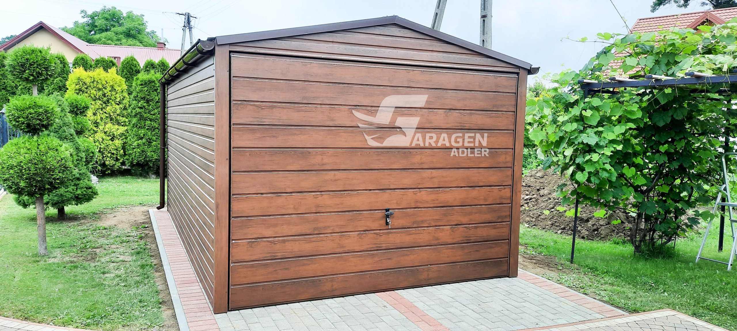 Blechgarage 3x6m Horizontal Blech Satteldach Schwingtor Holzoptik ID142