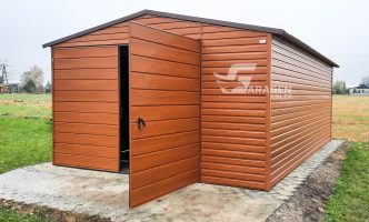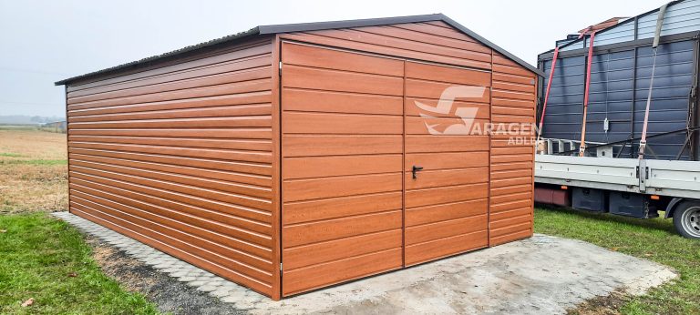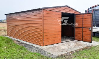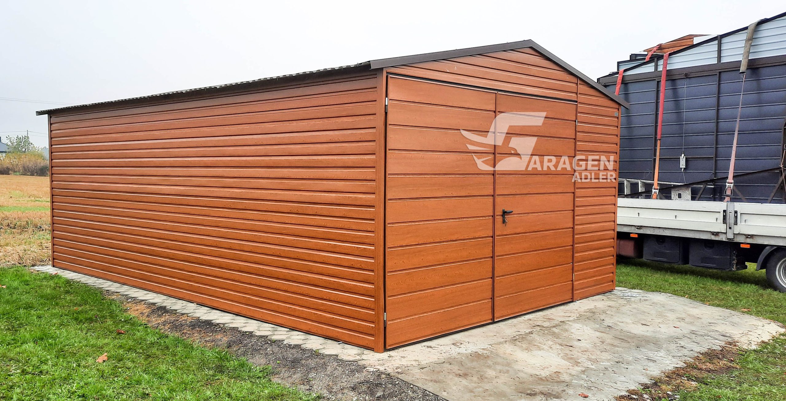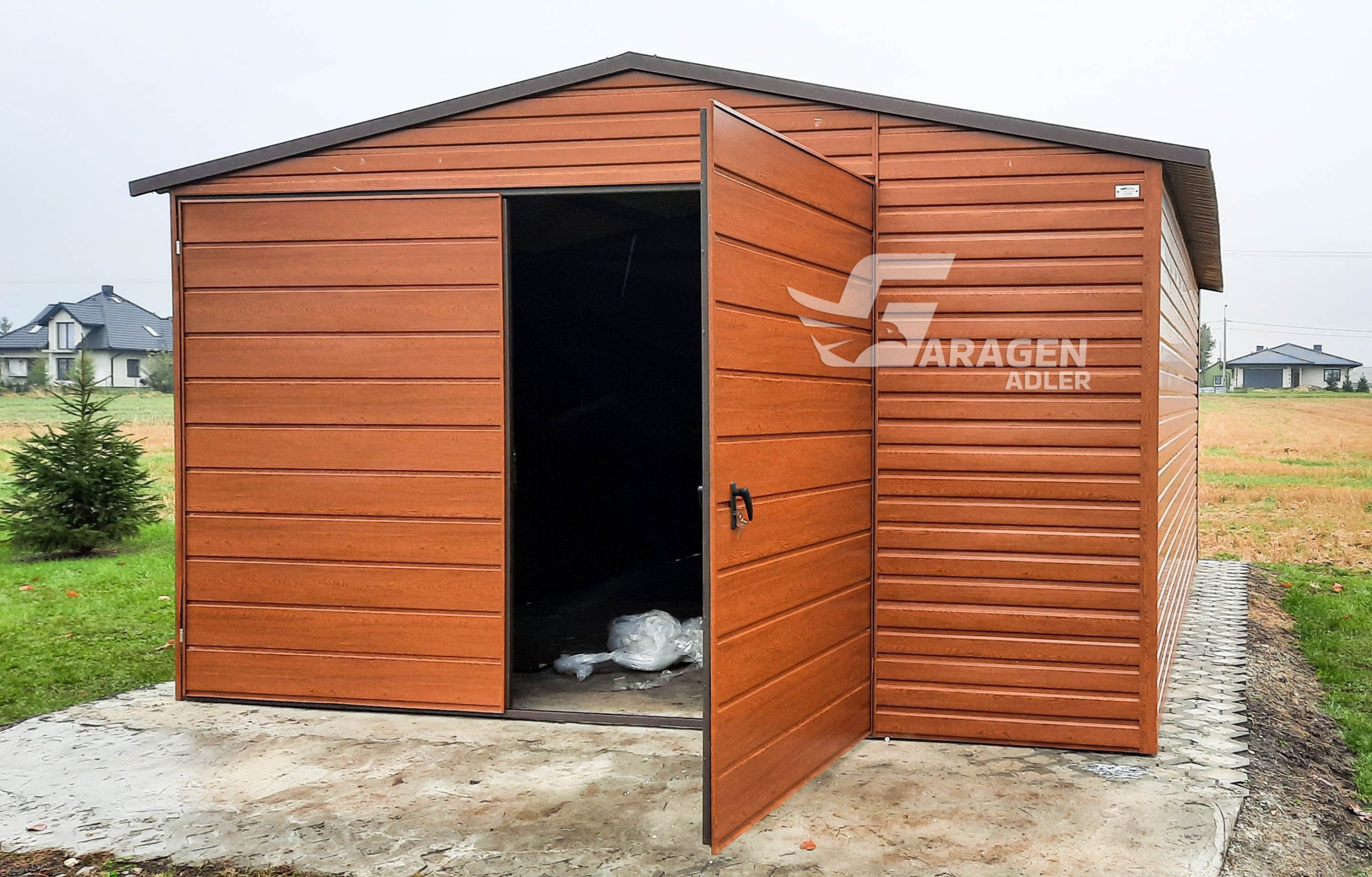 Blechgarage 4x6m Horizontal Blech Satteldach Schwingtor Holzoptik | ID144 |