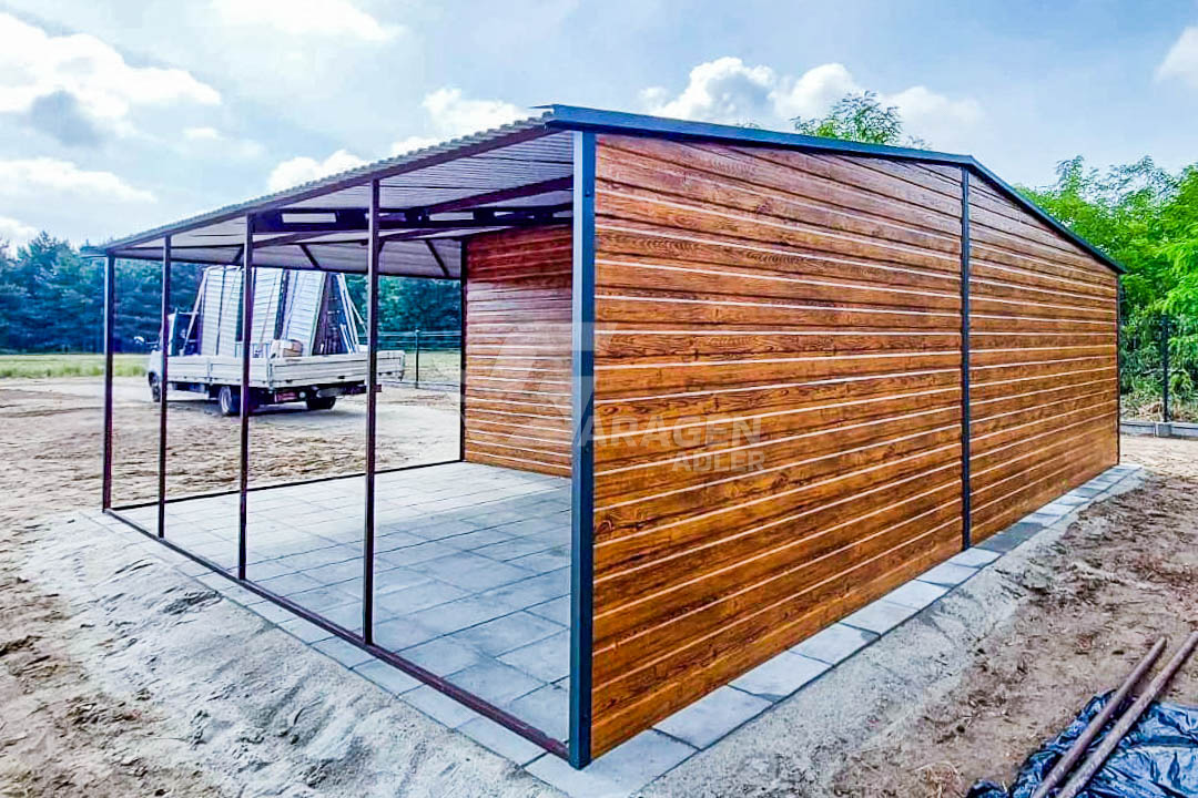 - Überdachung 4x6m Die Rückwand sind mit Paneelen verkleidet.