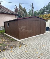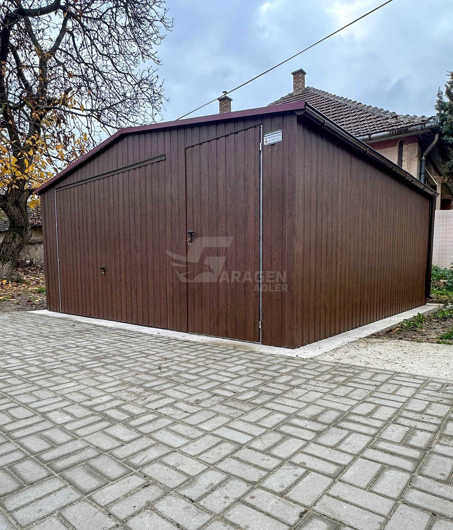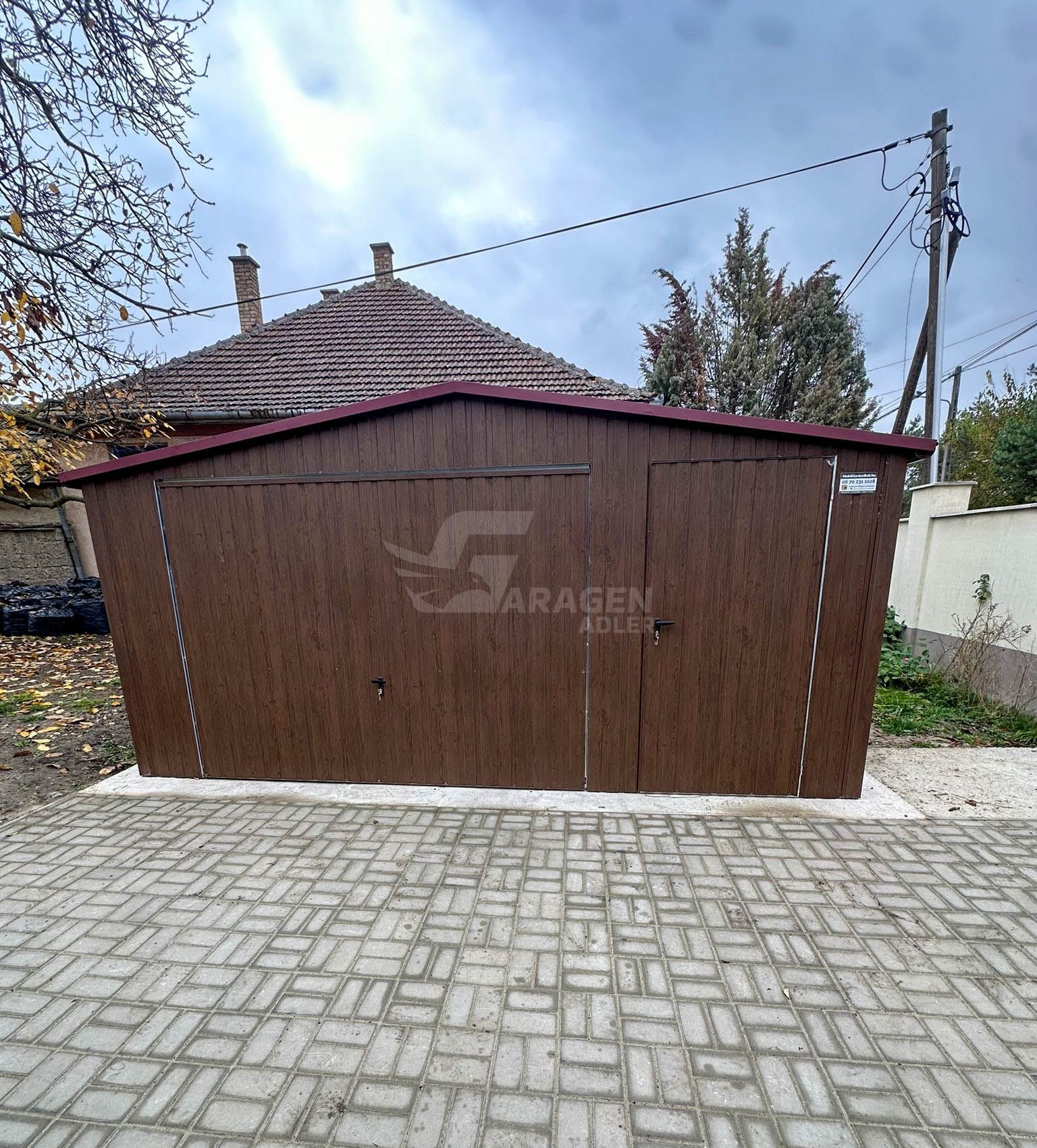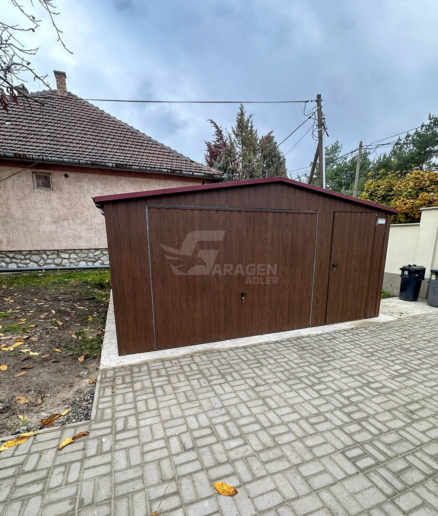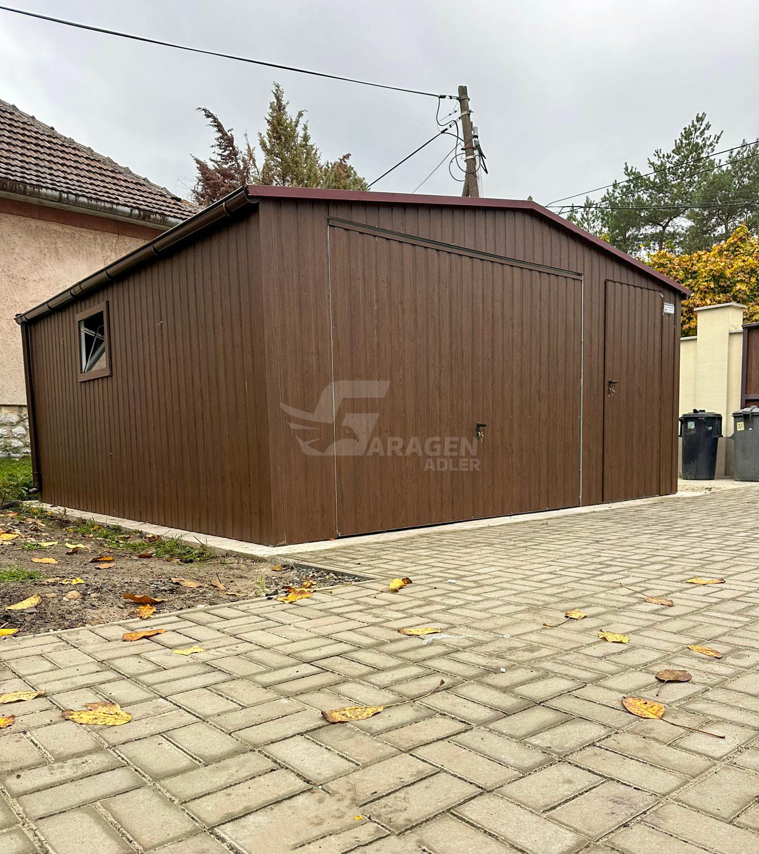 Blechgarage 5x5m Schwingtor – Tür – PVC Kippfenster – Holzoptik – Dachrinnen – Satteldach | ID770 |