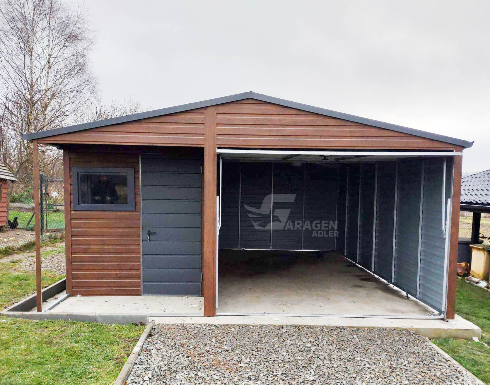 • Wir verwenden solide Verstärkungen der Konstruktion aus Winkeln, Trägern und geschlossenen Profilen Verstärkung des Daches durch einen Stahlrahmen+ Dachkonstruktion aus robusten, geschlossenen, feuerverzinkten ProfilenWir fertigen jede garage nach ihren wünschen. Bitte Kontaktieren sie uns, wenn sie irgendwelche fragen haben.