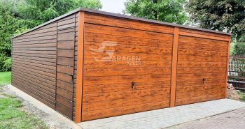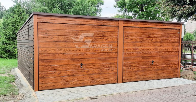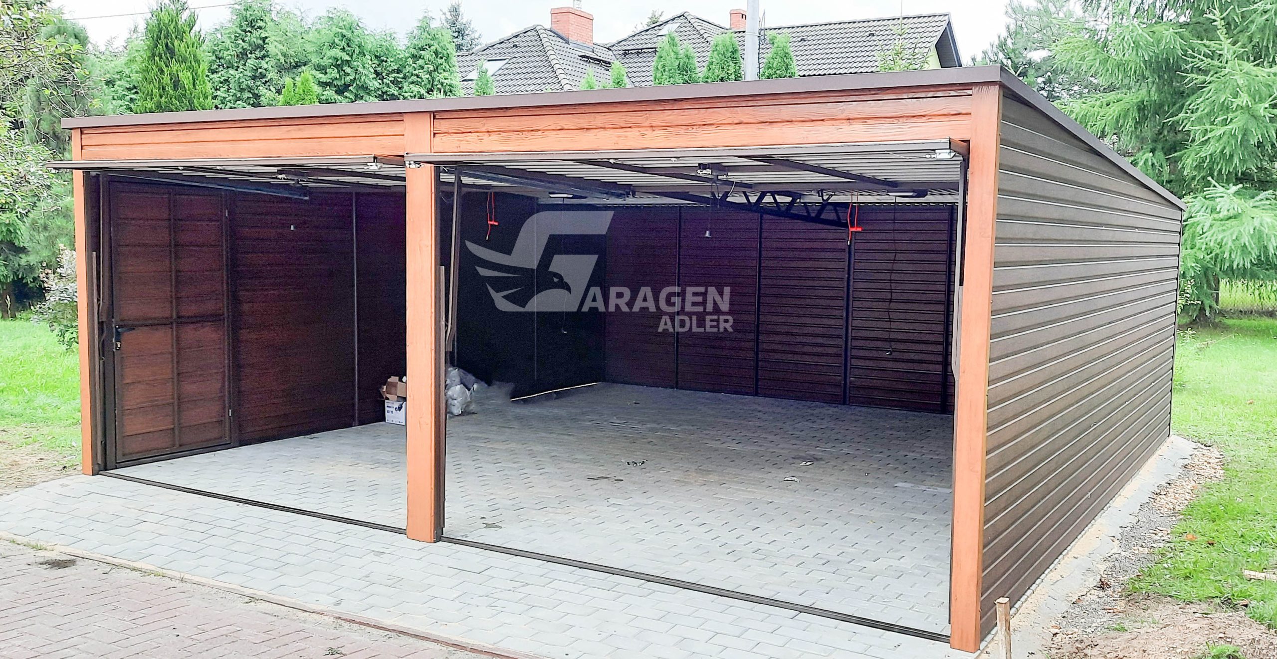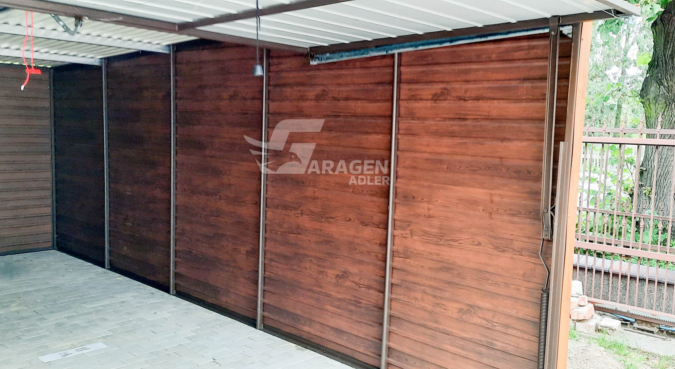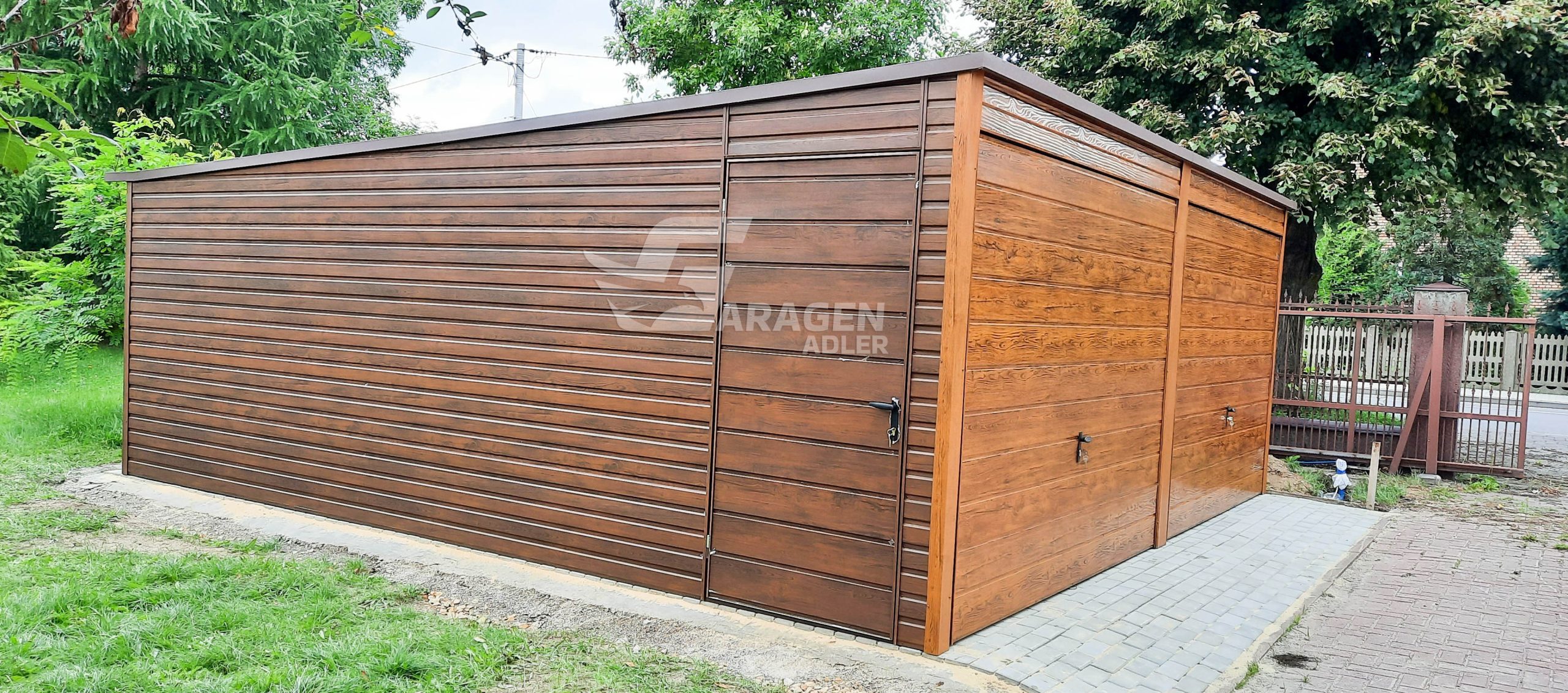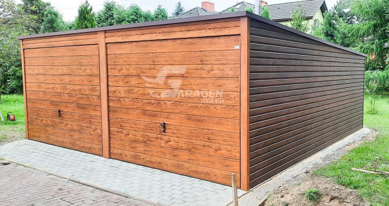 Blechgarage 6×5,8m 2x Schwingtor Horizontal Blech Holzoptik ID401