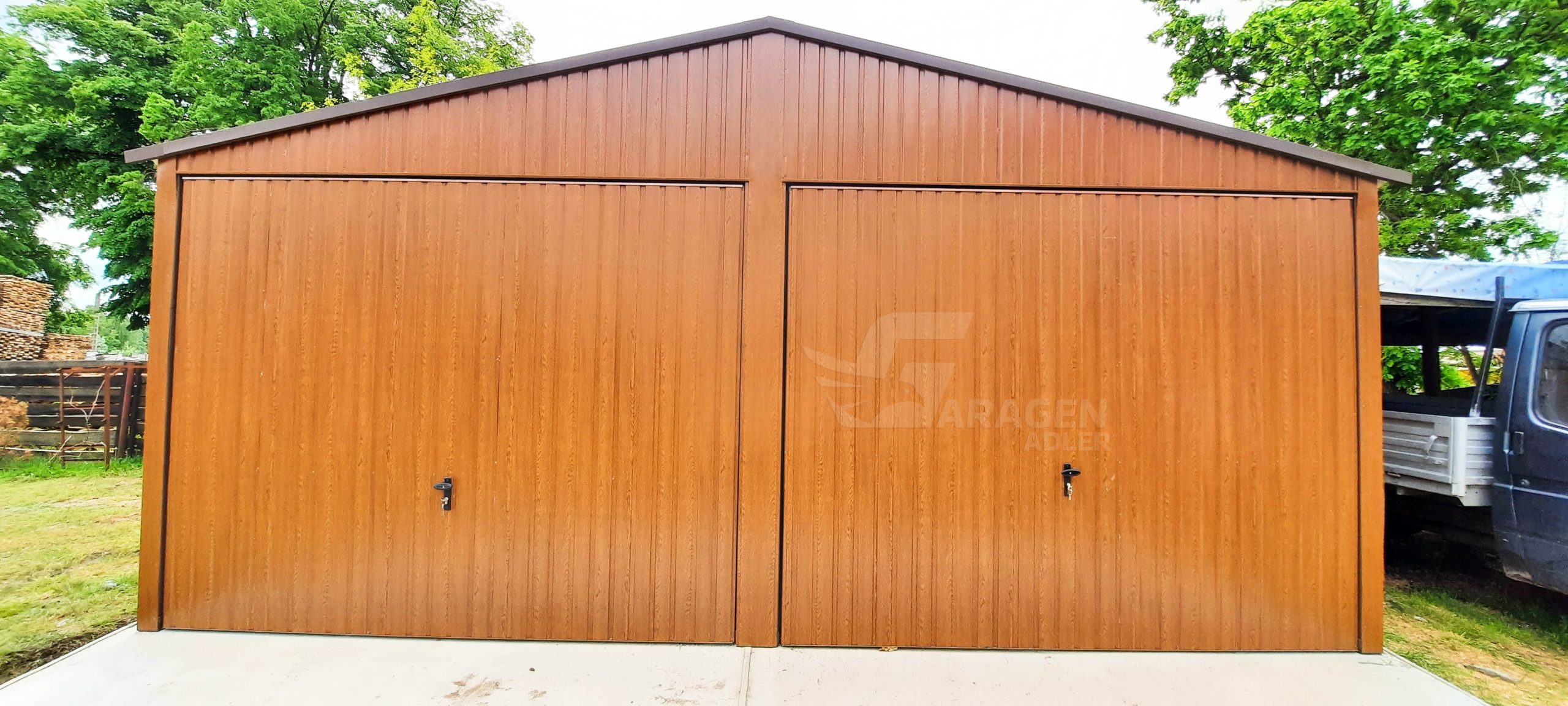 - 2x Schwingtor T17 Vertikal Blech Farbe:Goldene Eiche