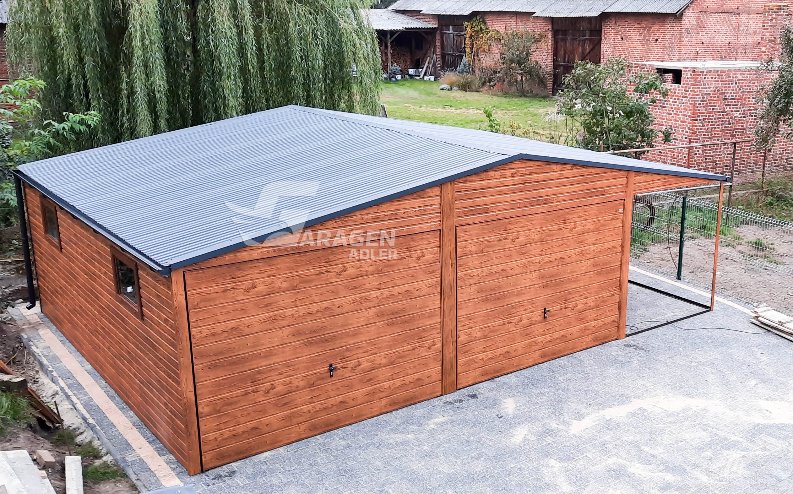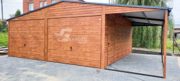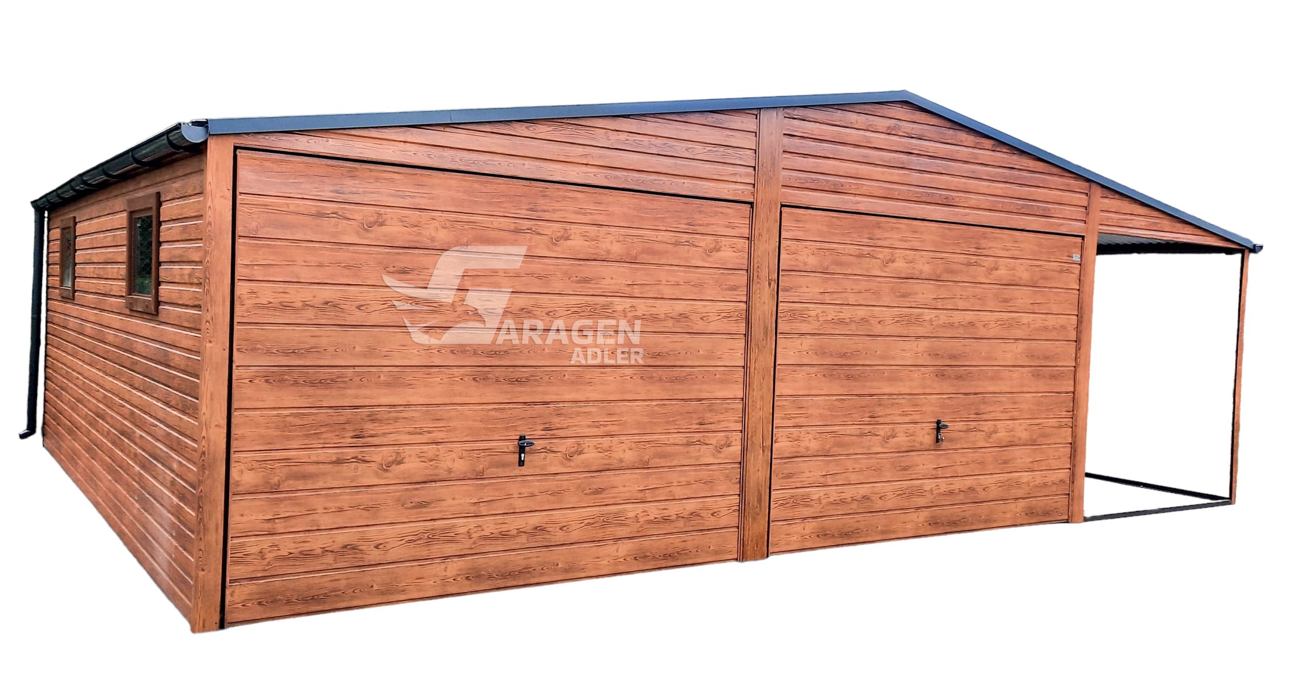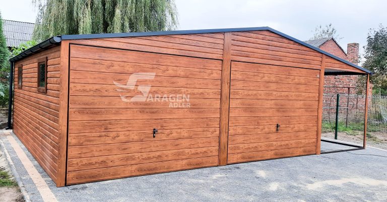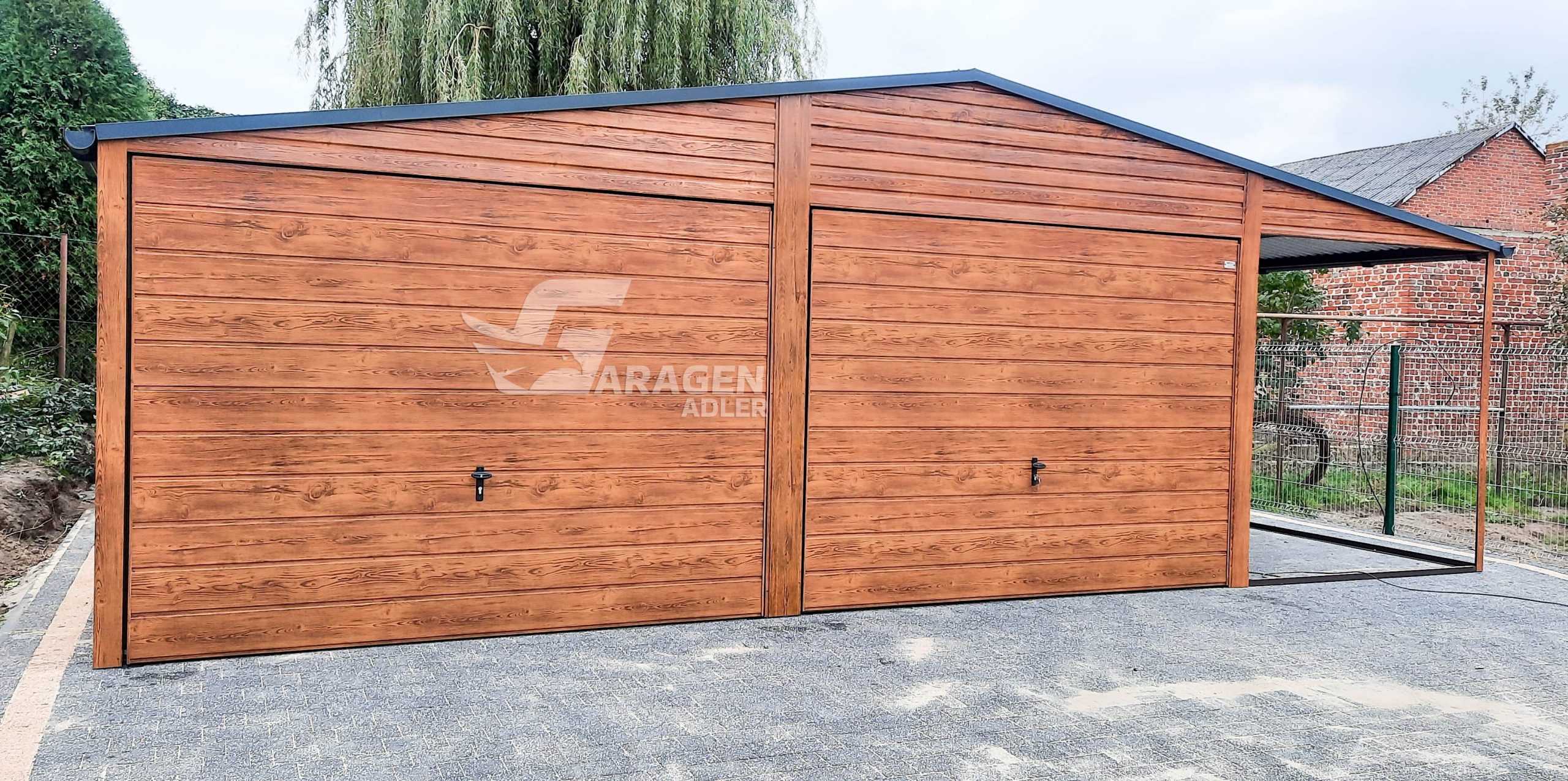 Blechgarage 6x6m Überdachung 2m Horizontal Blech Satteldach 2x Schwingtor Holzoptik ID137