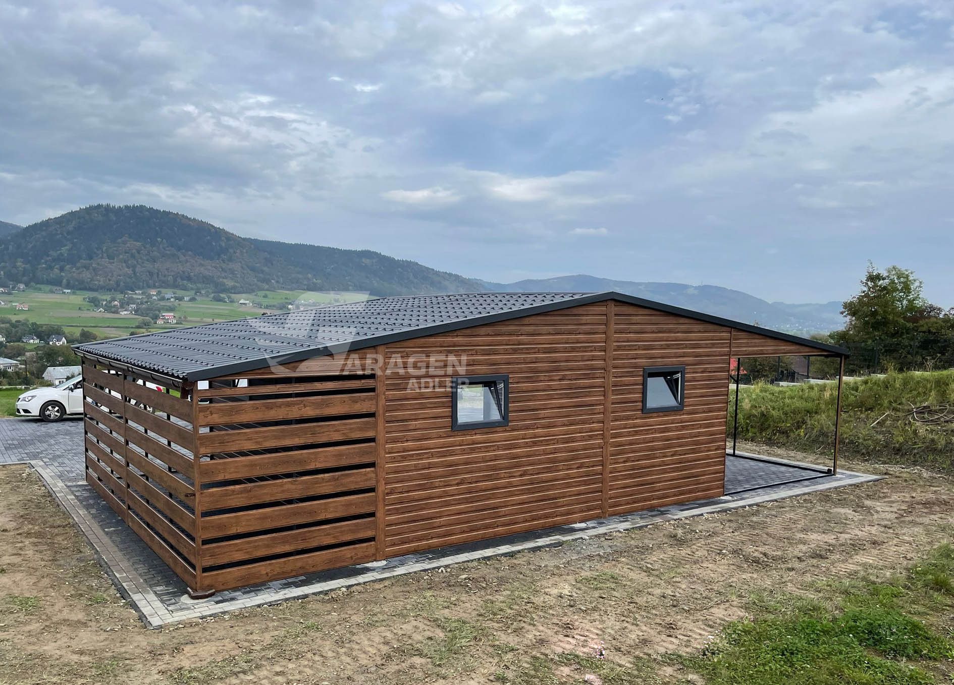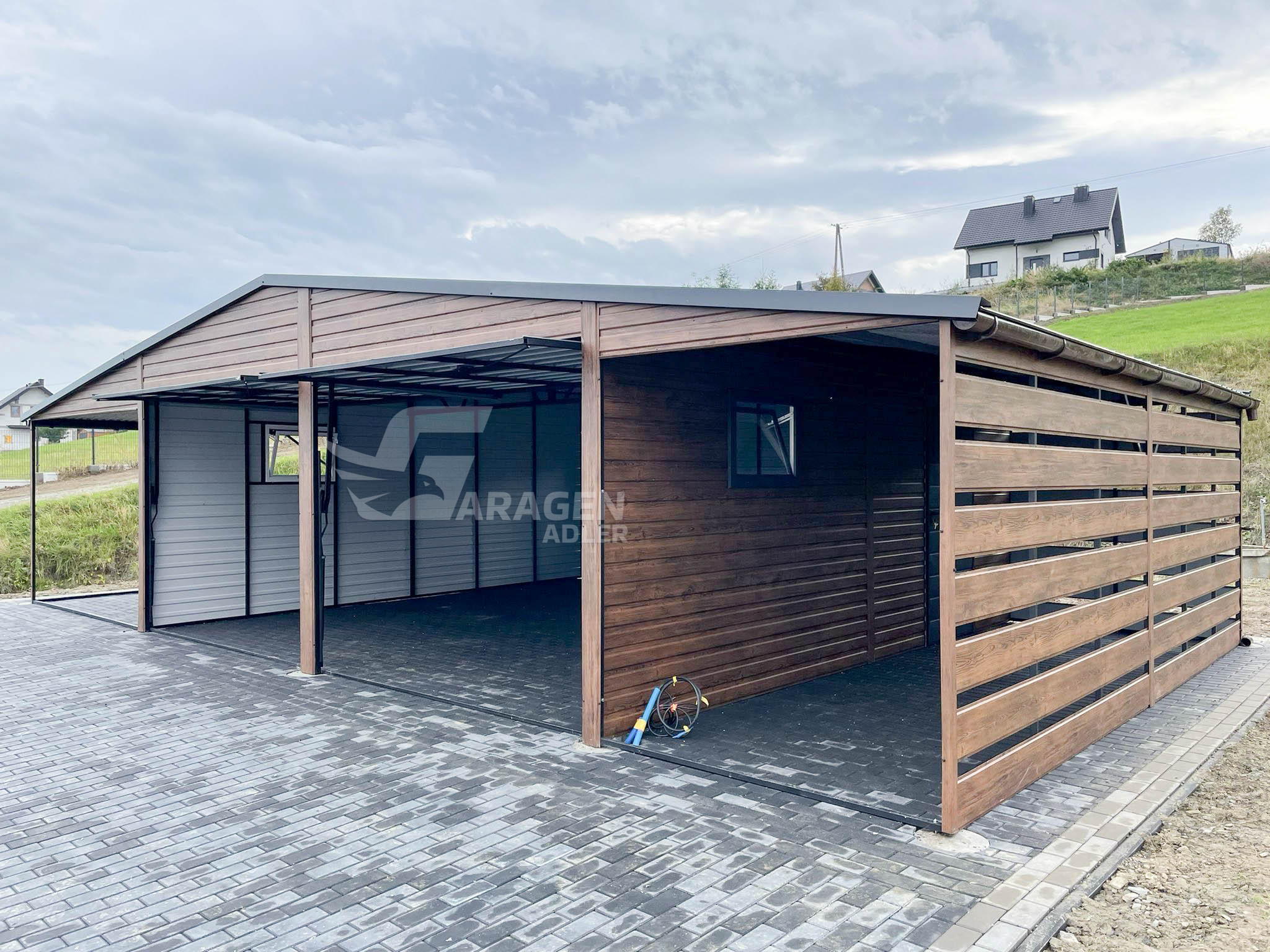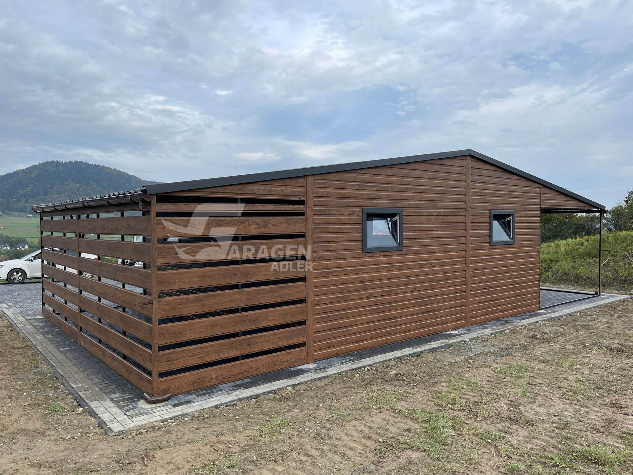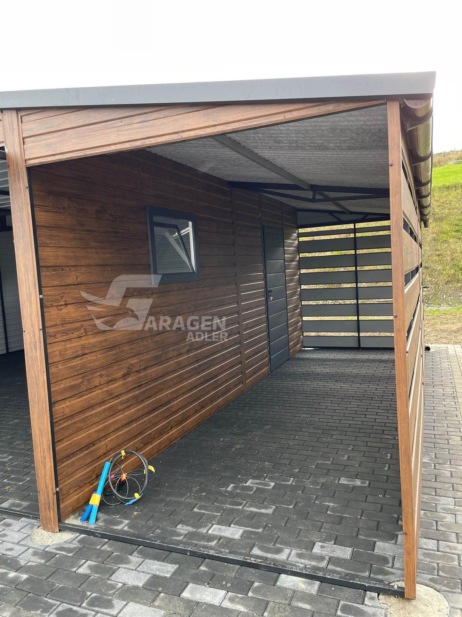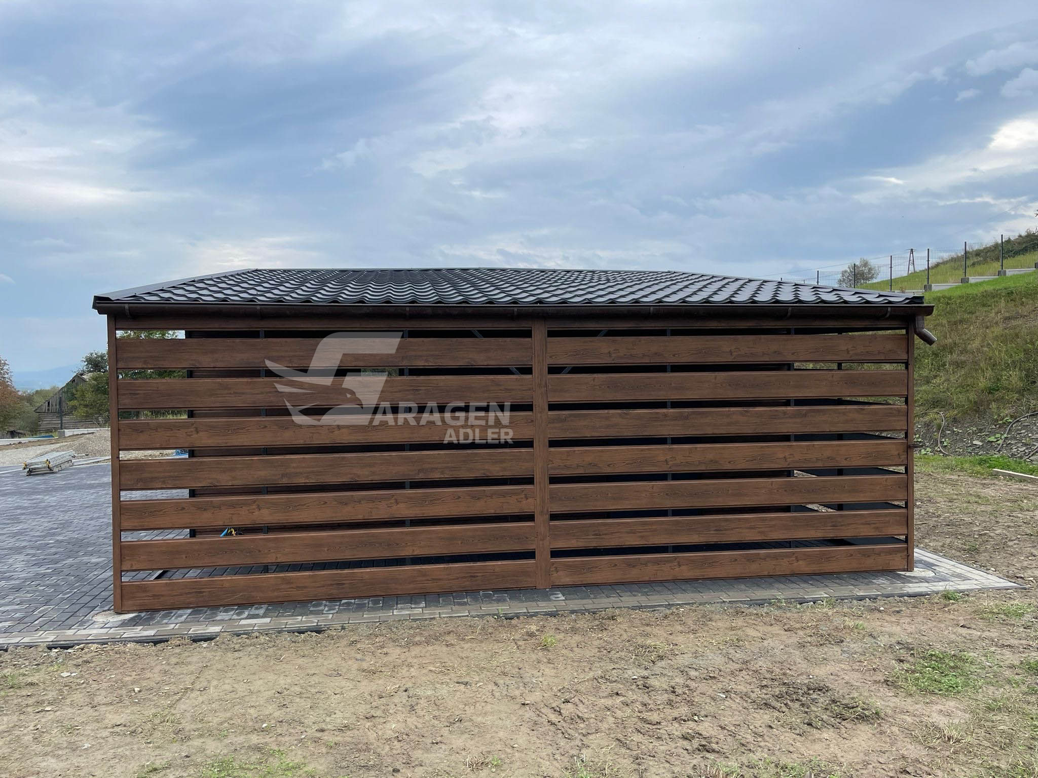 - Überdachung auf der rechten Seite 3m x 6m Verkleidet mit Paneelen