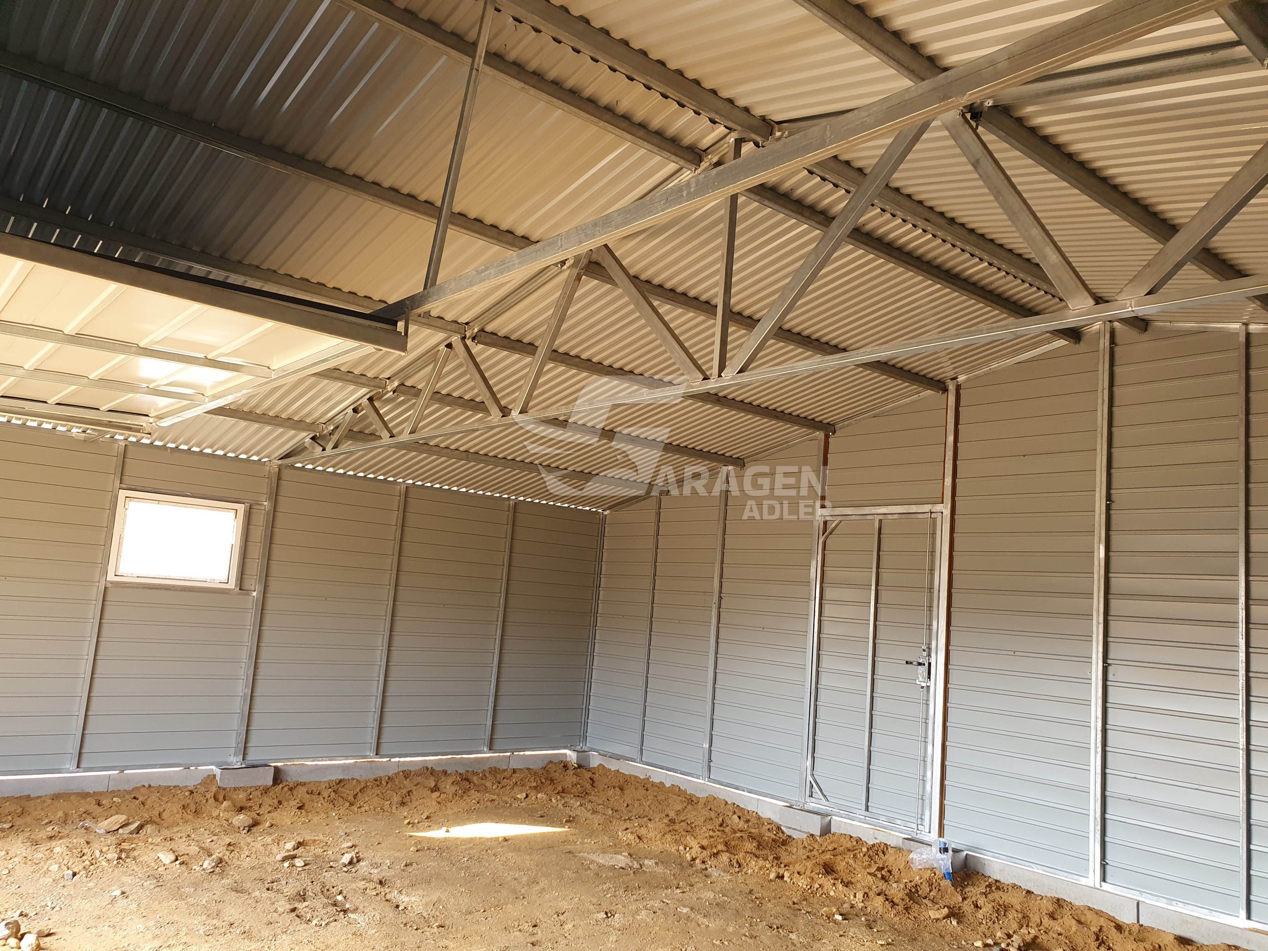 Dachkonstruktion aus robusten, geschlossenen, feuerverzinkten Profilen
