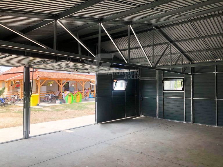 • Wir verwenden solide Verstärkungen der Konstruktion aus Winkeln, Trägern und geschlossenen ProfilenVerstärkung des Daches durch einen Stahlrahmen+ Dachkonstruktion aus robusten, geschlossenen, feuerverzinkten Profilen Wir fertigen jede garage nach ihren wünschen. Bitte Kontaktieren sie uns, wenn sie irgendwelche fragen haben.